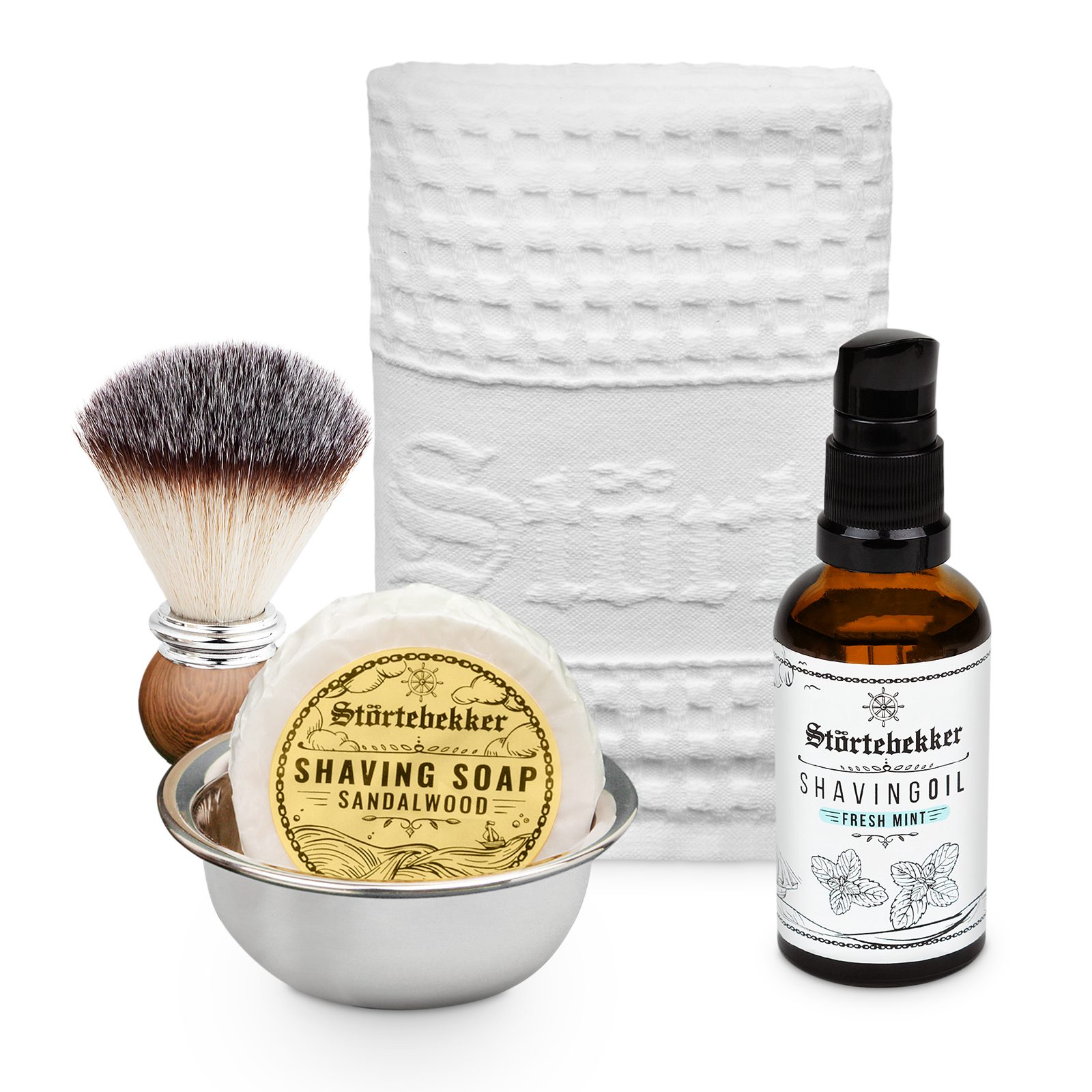Ausstattung | Rasierpinsel Rasierschale Rasierseife Rasiertuch Rasieröl |