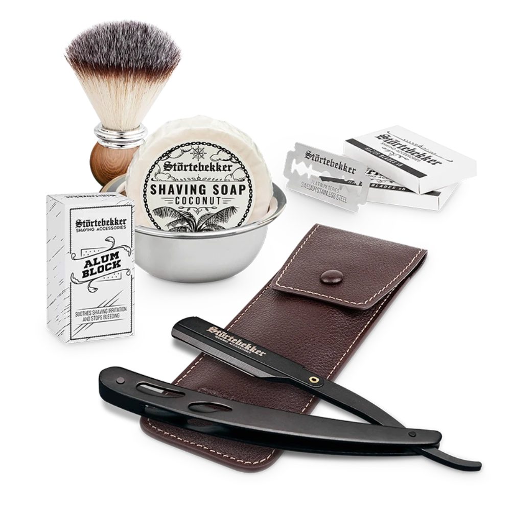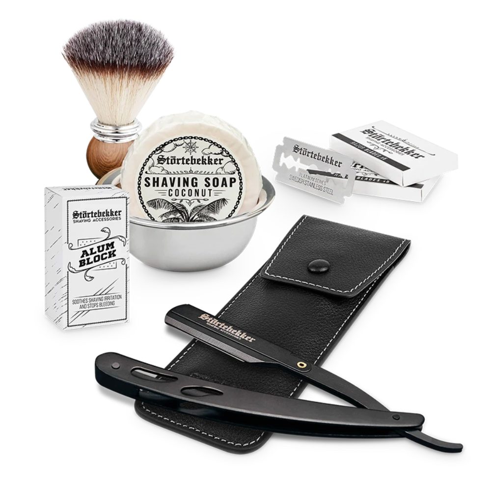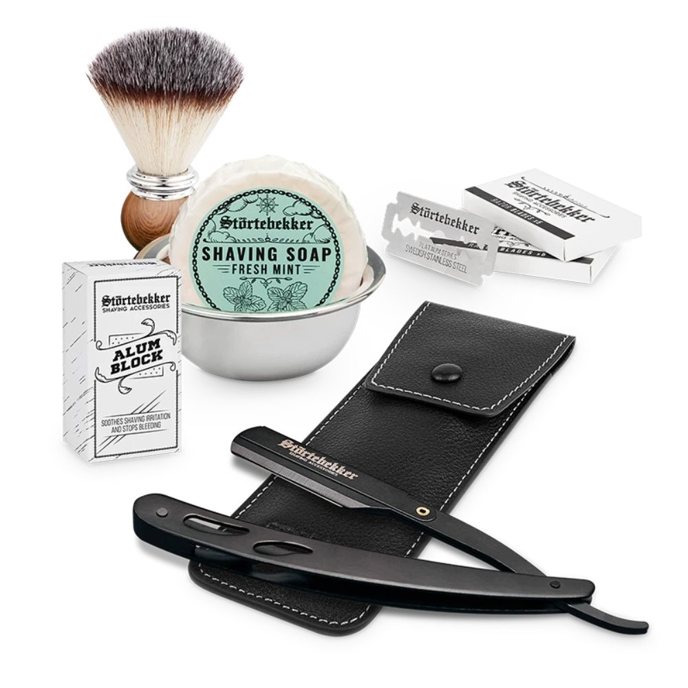 Besondere Merkmale | mit Rasierpinsel, Rasierschale, Rasierseife, Alaunstein und 10 Klingen |