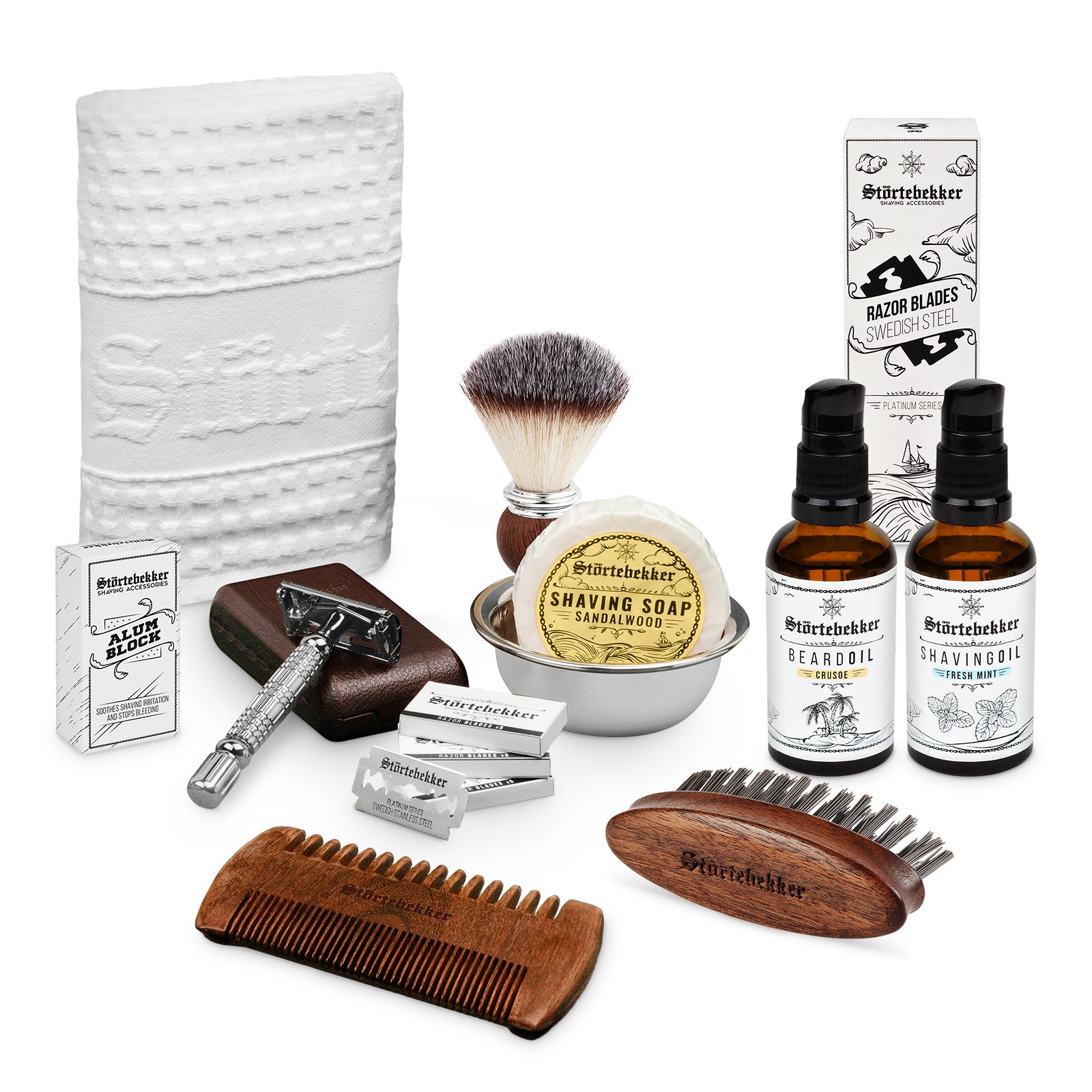 Das Störtebekker All-in-one Set liefert Dir alle wichtigen Produkte für Deine Rasur und Deinen Bart. Es besteht aus dem Bartöl, der Bartbürste, dem Bartkamm, dem Rasierhobel Silber, dem Rasierpinsel Set, den Störtebekker Rasierklingen, dem Alaunstein, dem Rasieröl und dem Rasiertuch. Mit den Produkten bist Du perfekt auf Deine Rasur vorbereitet und kannst deinen Bart pflegen und stylen.