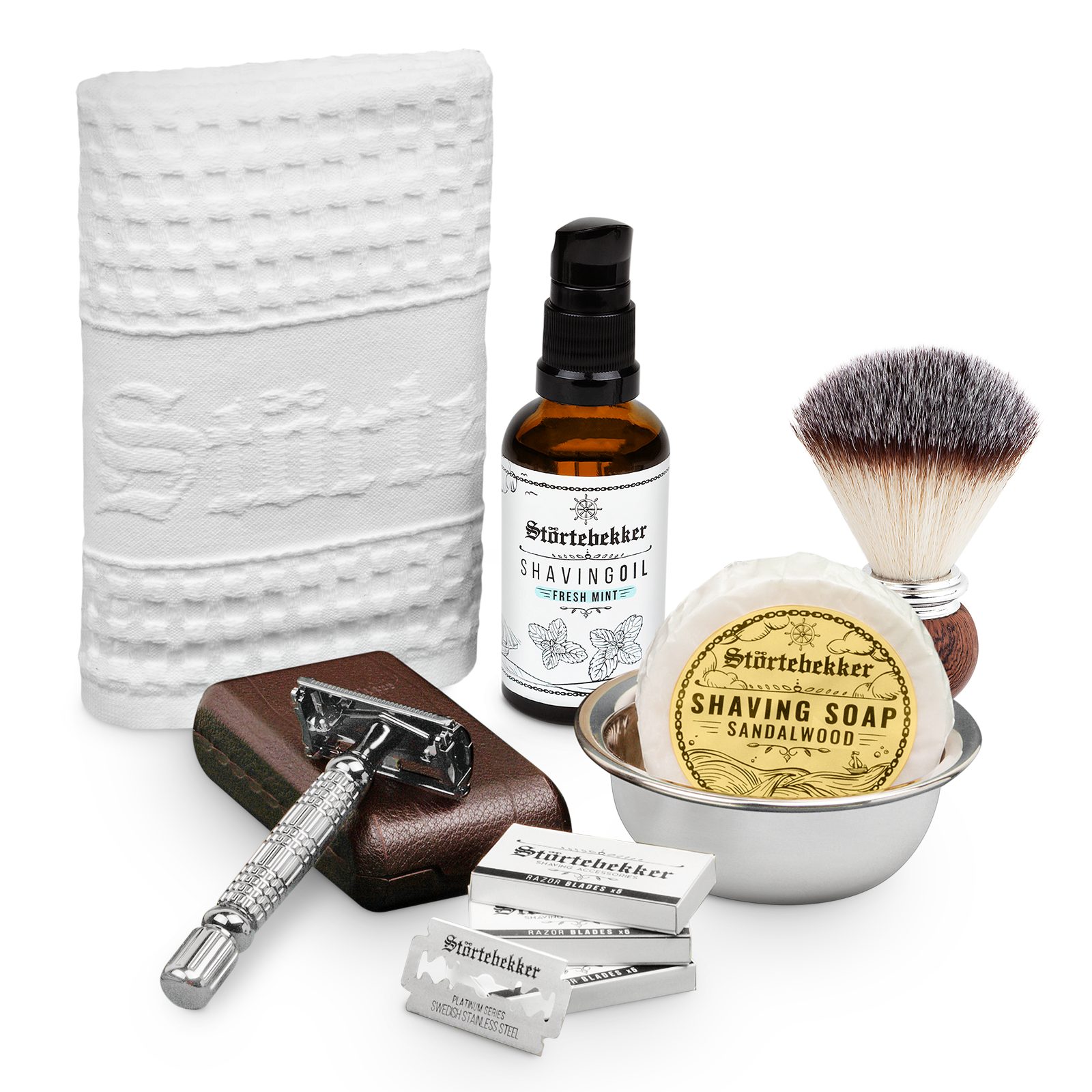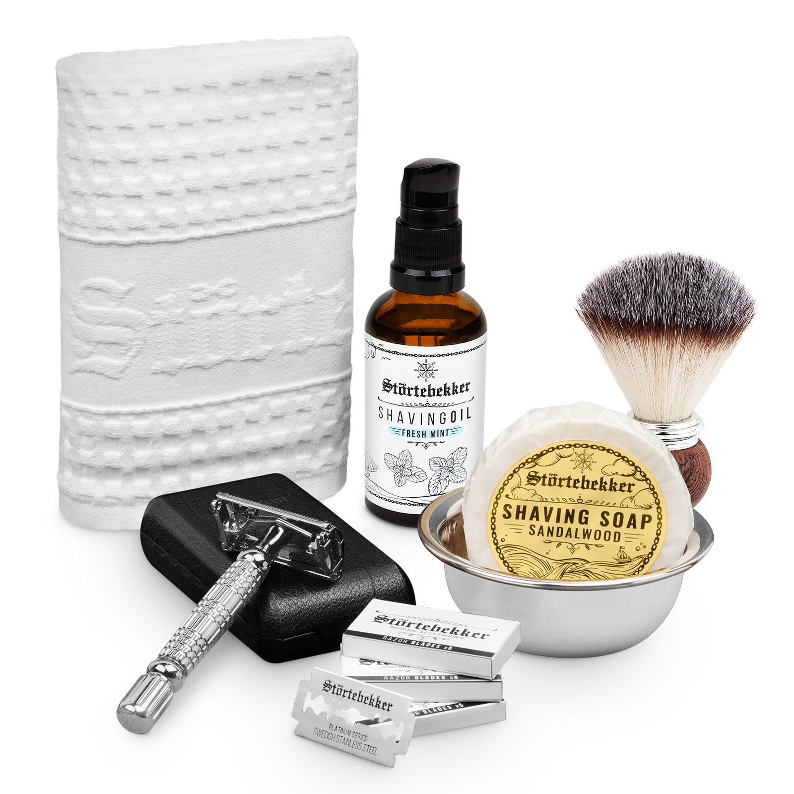 Das Störtebekker Rasurpflege Set Premium liefert Dir alle wichtigen Produkte für Deine Rasur und Rasurvorbereitung. Es besteht aus dem Rasierhobel Silber, dem Rasieröl, dem Rasierpinsel Set und dem Rasiertuch. Mit den Produkten bist Du perfekt auf Deine Rasur vorbereitet und garantierst eine hautschonende Behandlung Deiner Haut.