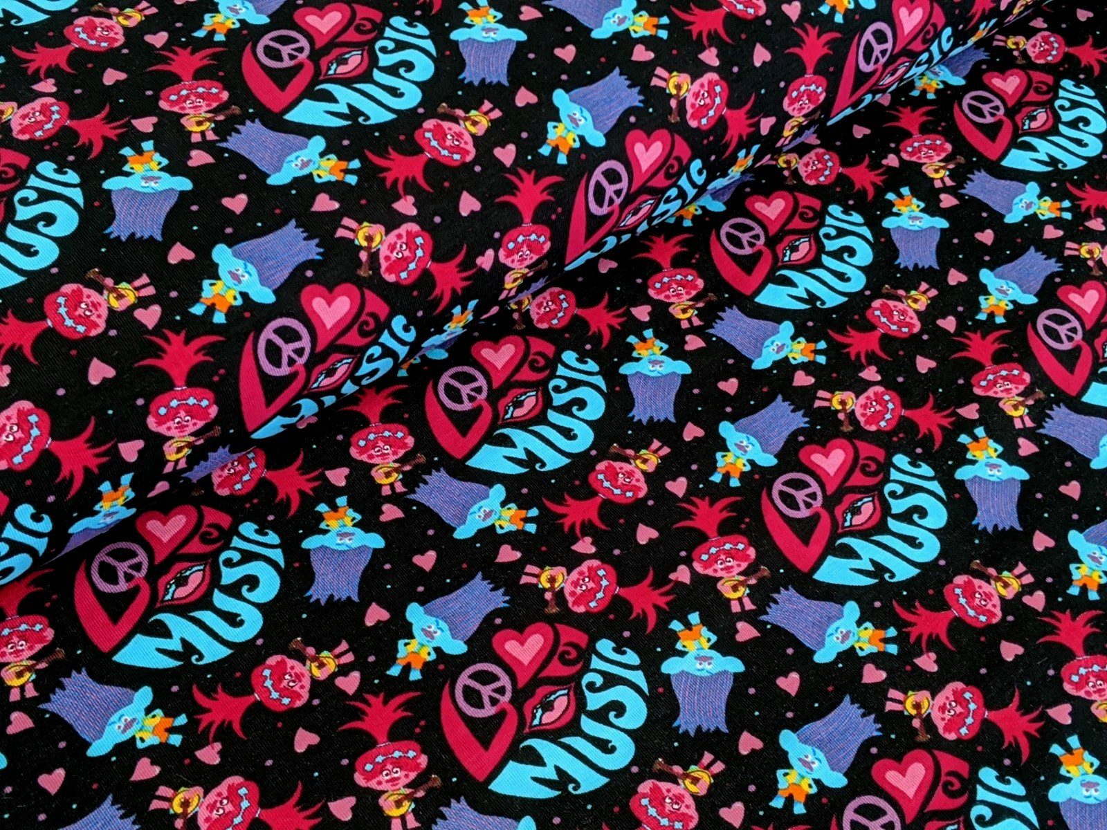 Stoff Baumwolljersey DreamWorks Musik Trolls Schwarz Stoff Meterware