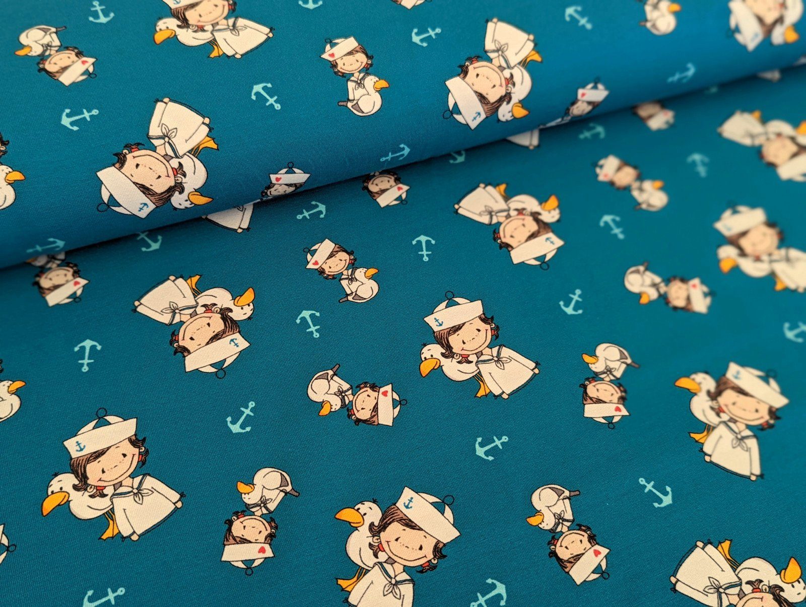 Stoff Baumwolljersey Emma & Bob by Emmapünktchen Blau Stoff Jersey