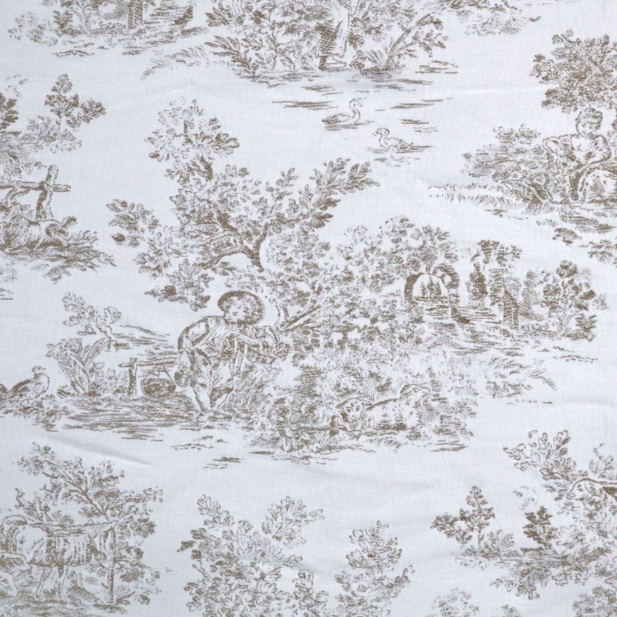 Der Jacquard Toile de Jouy Colline Leinen ist ein hochwertiger Dekostoff, der aus 60 % Baumwolle besteht. Das Doppelgewebe ist weich und hat eine Piqué-artige Struktur, die dem Stoff eine besondere Haptik verleiht. Der Stoff ist in einem zauberhaften Toile-de-Jouy Muster in Leinenfarbe gewebt. Das Muster zeigt idyllische Landschaften mit Bauernhöfen, Tieren und romantischen Szenen. Dieser klassische Look verleiht jedem Raum eine charmante Note und kann sowohl in traditionellen als auch modernen Einrichtungsstilen eingesetzt werden. Der Deko-Jacquard zeichnet sich durch seine hohe Qualität und Langlebigkeit aus. Der hohe Baumwollanteil sorgt dafür, dass der Stoff angenehm weich und atmungsaktiv ist. Gleichzeitig sorgt der Polyesteranteil für eine hohe Strapazierfähigkeit und Pflegeleichtigkeit. Der Stoff eignet sich hervorragend für Vorhänge, Kissen, Tischdecken, Bettüberwürfe oder leichte Polsterarbeiten. Durch seine weiche Beschaffenheit ist er angenehm anzufassen und verleiht jedem Raum eine gemütliche Atmosphäre.