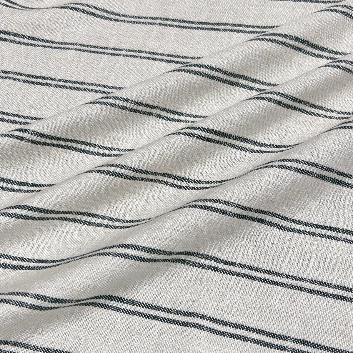 Der Dekostoff Leinen-Viskose Streifen Sinatra vereint sommerliche Frische mit Naturverbundenheit; strapazierfähige Mischung aus 70 % Viskose und 30 % reinem waschbaren Leinen.
