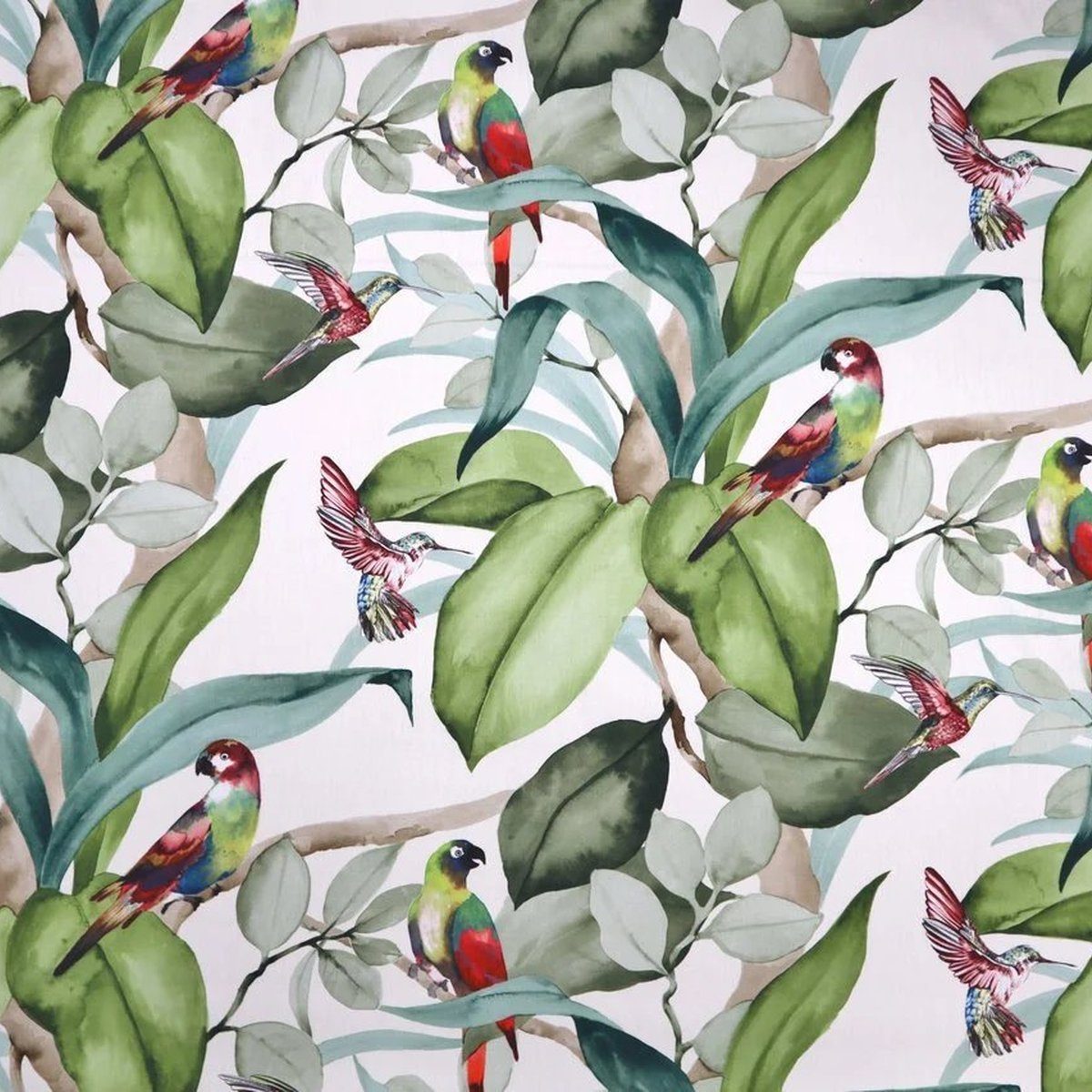 Der 140cm breite dralon®-Outdoorstoff im Dschungel-Look ist mit bunten, sitzenden Papagaien auf einem ecrufarbenen Fond bedruckt. Durch die ausgewählte Farb-Kombination wirkt der Outdoorstoff sehr modern und frisch. In der freien Natur, auf der Veranda, auf dem Balkon – hier spielt dralon® seine Vorteile ganz besonders aus: durch brillante Farbigkeit, hohe Pflegeleichtigkeit hohe UV-Beständigkeit und einen angenehmen Griff. Außerdem sind Gewebe aus dralon® höchst strapazierfähig und langlebig; es tritt weder Schimmelbildung noch Bakterienbefall auf. Der Outdoorstoff ist daher ideal für Kissen, Sonnenschirme und Polsterungen von Gartenmöbeln geeignet.