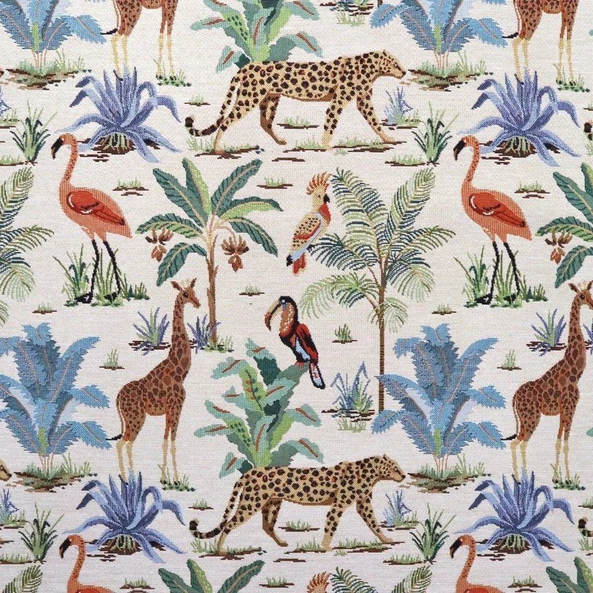 Ausgefallener Gobelinstoff mit Jacquardmuster im Tropical-Design für besonders robuste, formstabile Dekoration- und Polsterarbeiten.