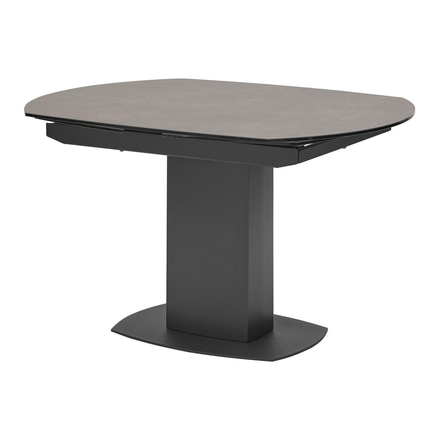 Der Esstisch MICHAEL ist mit einer Tischplatte aus Keramik in der Farbe Taupe ausgestattet. Das Säulengestell besteht aus Metall in Anthrazit. Der Tisch verfügt über einen beidseitigen Drehauszug. Die Breite beträgt 130 cm und kann auf maximal 190 cm erweitert werden. Die Tiefe liegt bei 100 cm.