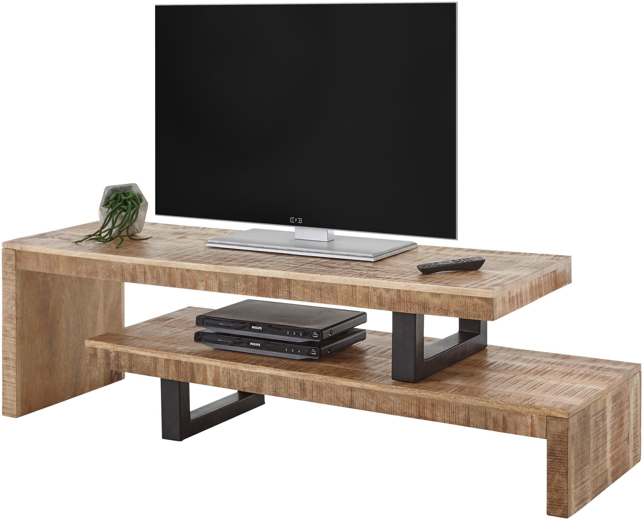 Wissenswertes | Empfohlenes Stellmaß BxHxT 140x45x40 cm Füße Metall schwarz matt TV Lowboard Mango Wood Massivholz Variabel stellbar bestehend aus zwei beweglichen Teilen |