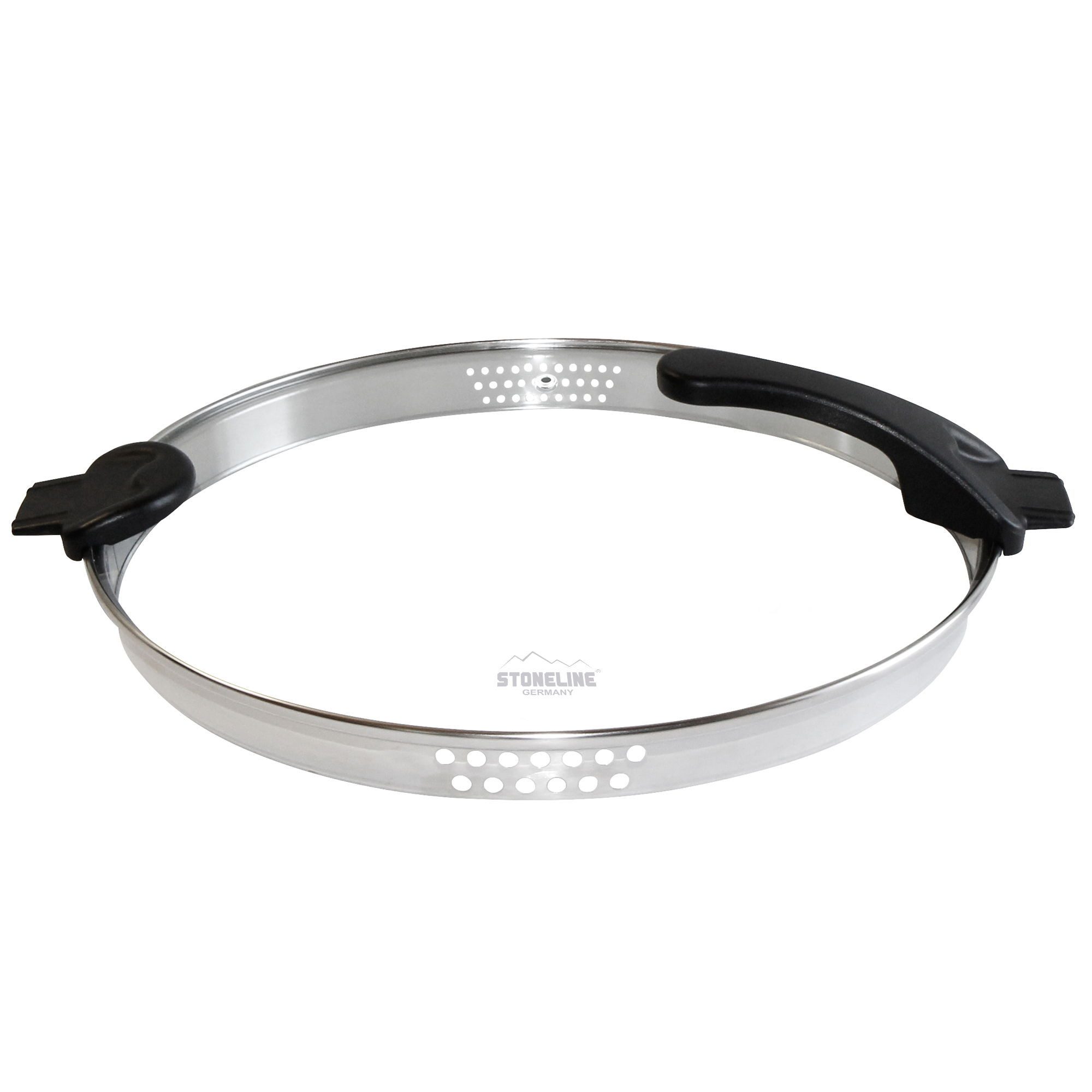 Jetzt können Sie Bratenfond, Gemüsesud oder Nudelwasser sauber und direkt nach dem Kochen abschütten – ohne den Deckel abnehmen zu müssen und ohne weitere Küchenhelfer zu verschmutzen!