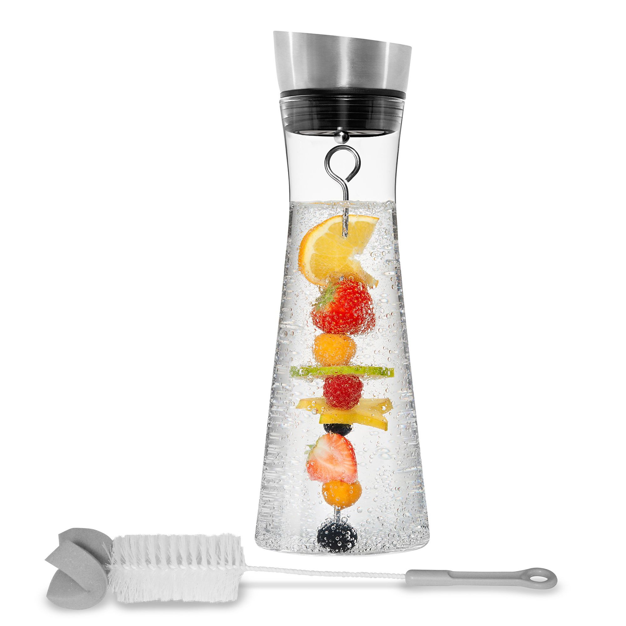 Den enthaltenen Fruchtspieß können Sie nach Lust und Laune „bestücken“ und Ihrem Getränk Ihre ganz persönliche Fruchtnote verleihen. Einfach die Früchte aufspießen, den Stopper anbringen und ab damit in die Wasserkaraffe.