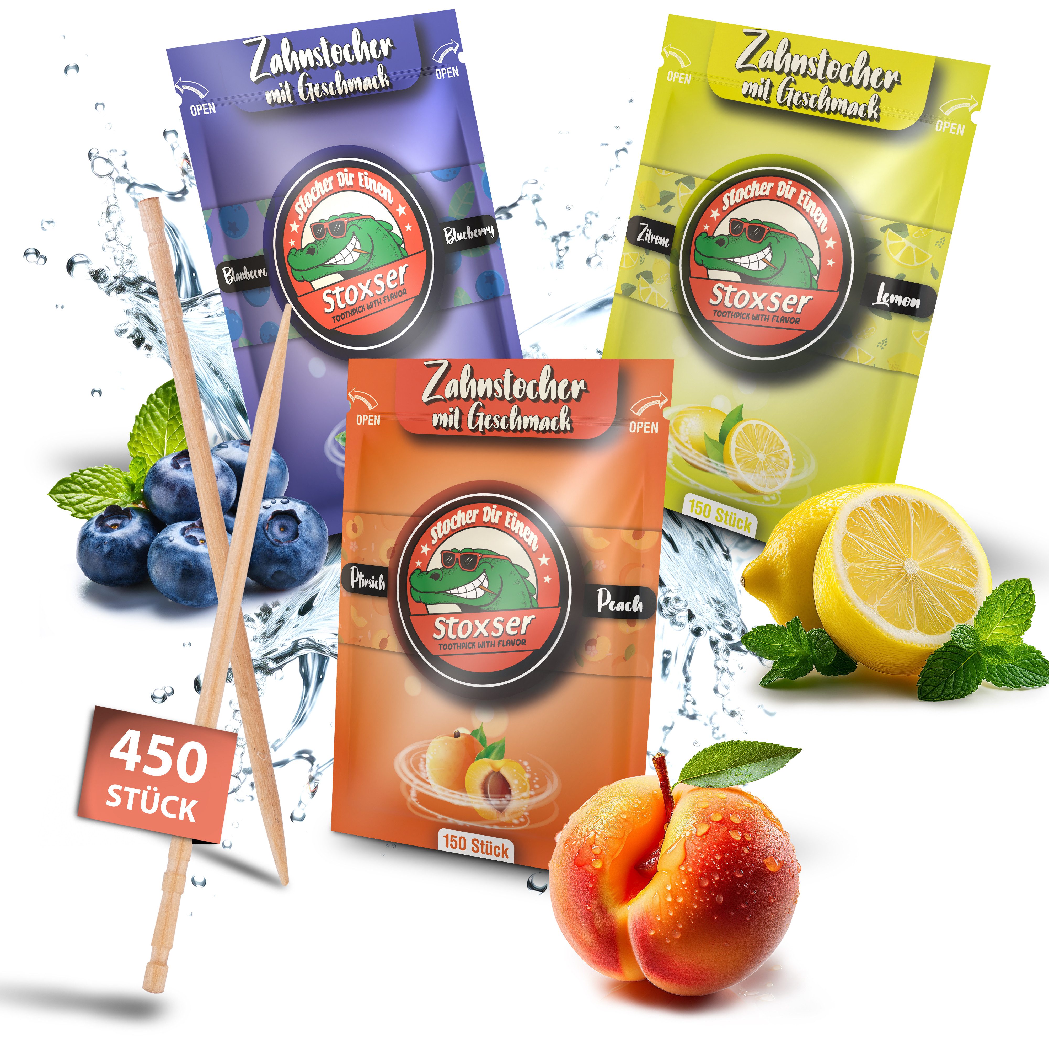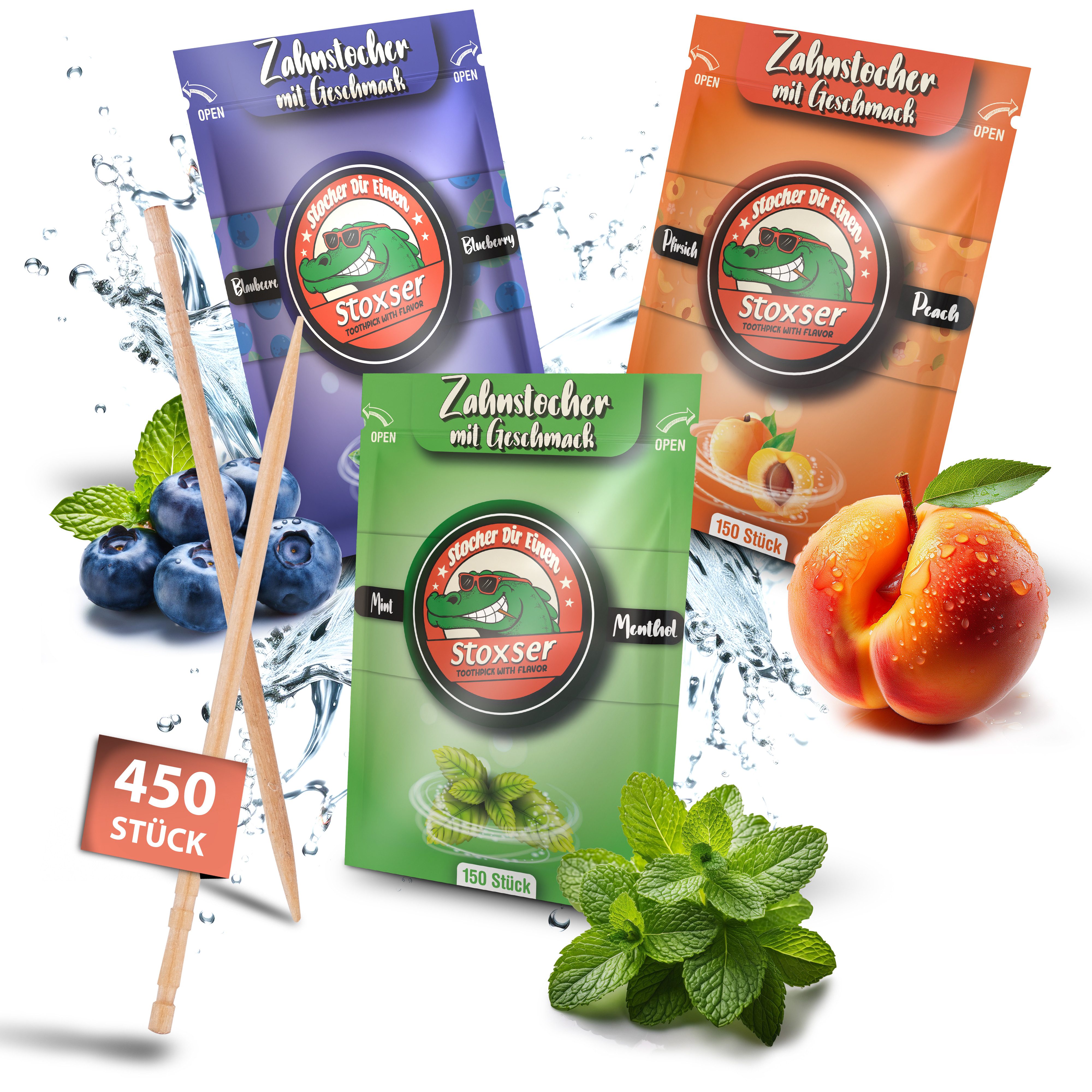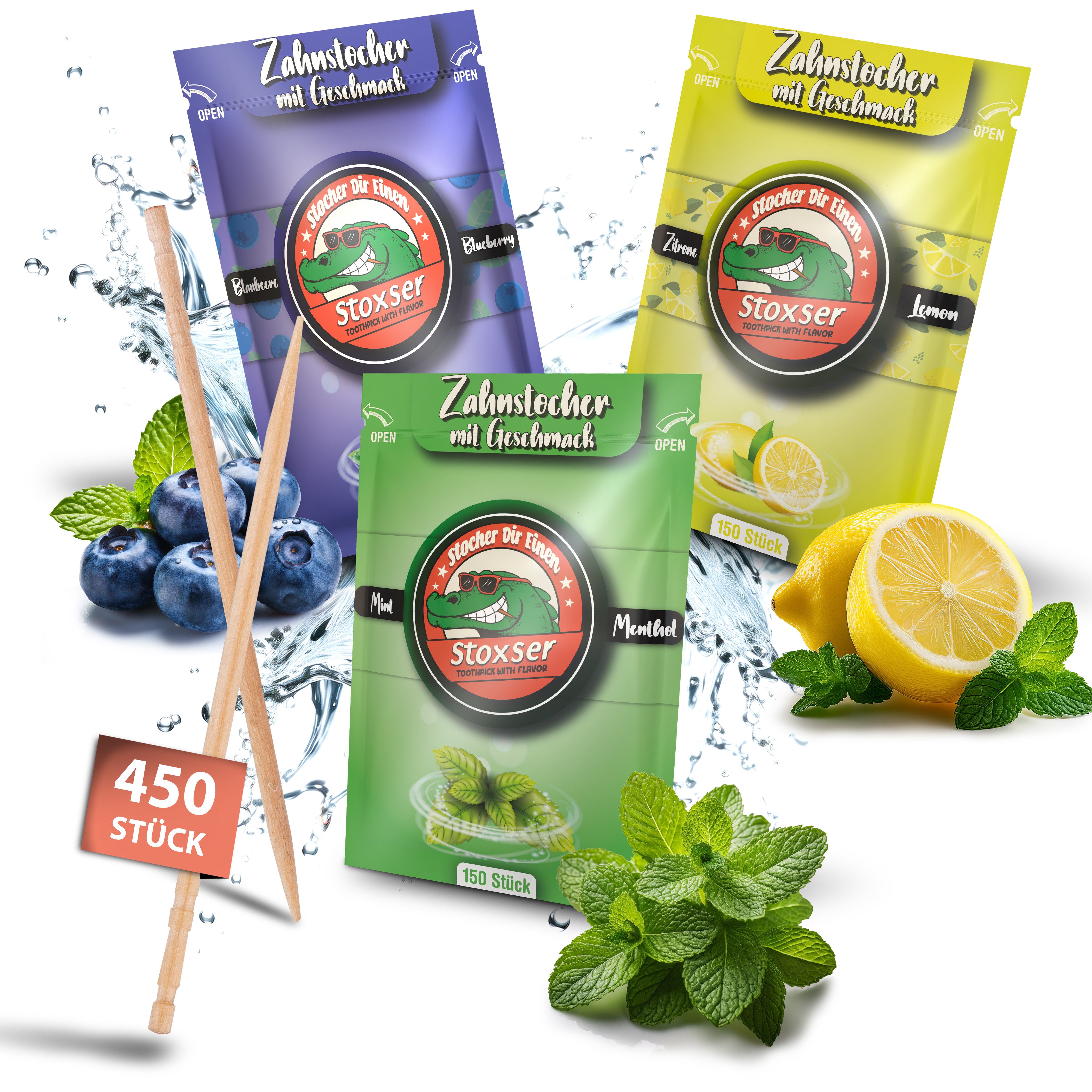 Lieferumfang | 450 x Zahnstocher mit Geschmack im 3er Set |
