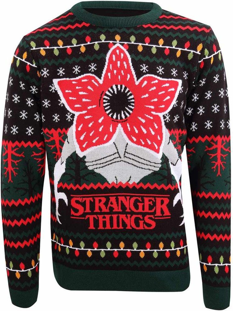 Entdecke mit dem Stranger Things - Demogorgon (Knitted) Sweatshirt Multicolour einen echten Blickfang für alle Fans der beliebten Netflix-Serie. Das einzigartige Design des Sweatshirts zeigt den furchterregenden Demogorgon, der im Dunkeln leuchtet und somit für einen besonders gruseligen Effekt sorgt. Das hochwertige Strickmaterial sorgt für einen angenehmen Tragekomfort und hält dich auch an kühleren Tagen warm. Das Stranger Things - Demogorgon (Knitted) Sweatshirt Multicolour ist in verschiedenen Größen erhältlich, sodass du die perfekte Passform für dich finden kannst. Durch die bunte Farbgestaltung wird das Sweatshirt zum absoluten Hingucker und lässt dich stilvoll deine Begeisterung für Stranger Things zeigen. Ob beim gemütlichen Serienmarathon zuhause oder beim Treffen mit Freunden, mit diesem Sweatshirt bist du immer bestens gekleidet. Der Demogorgon ist das Sinnbild für die Spannung und das Mysterium, das die Serie Stranger Things auszeichnet. Mit dem Stranger Things - Demogorgon (Knitted) Sweatshirt Multicolour kannst du dich selbst in die Welt der Upside Down stürzen und ein Teil dieser faszinierenden Geschichte werden. Lass dich von dem einzigartigen Design und dem hohen Tragekomfort überzeugen und zeige deine Leidenschaft für Stranger Things auf stilvolle Weise.