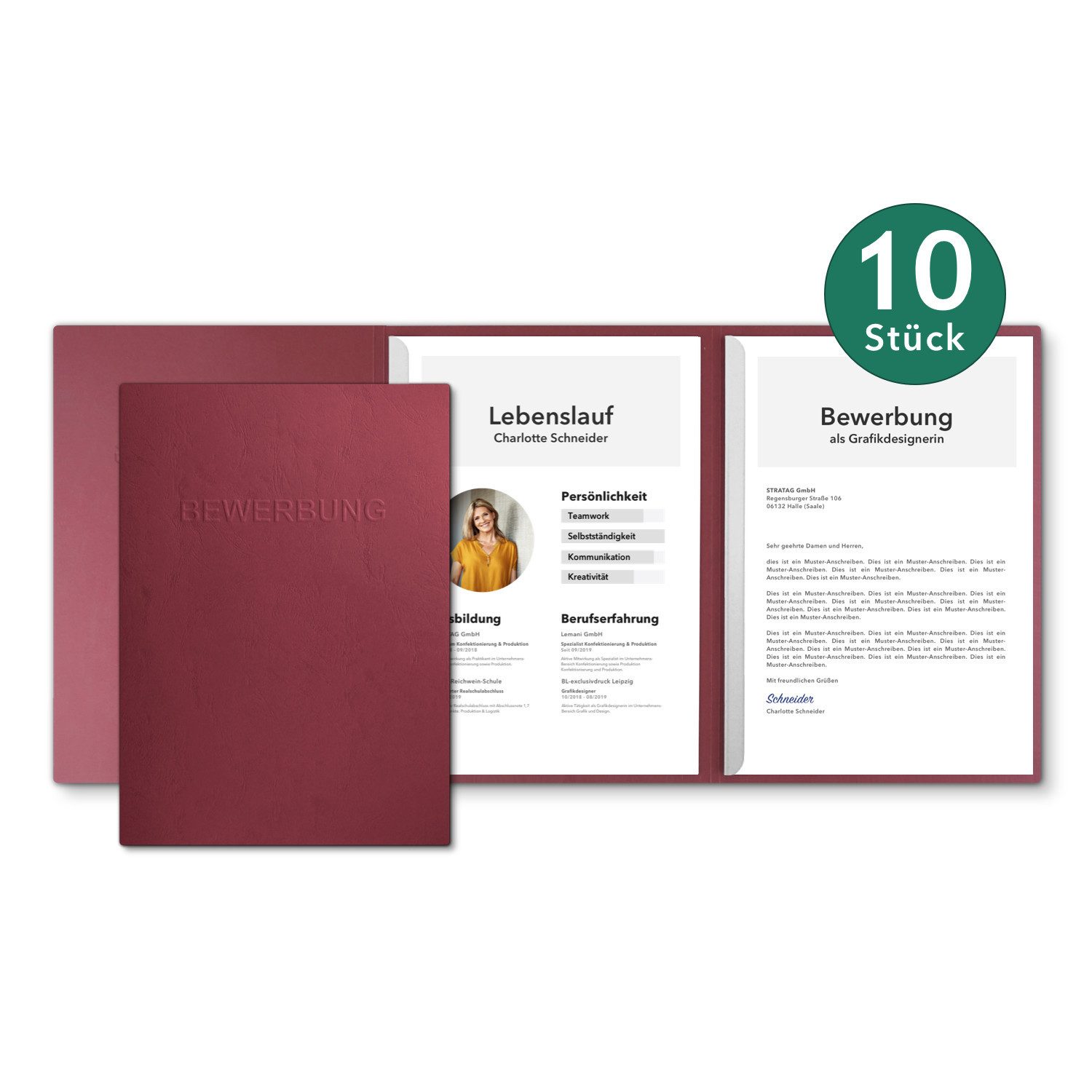 10x BEWERBUNGSMAPPEN: 10 Stück dreiteilige Bewerbungsmappen - zweifach aufklappbar - in einer stoßsicheren Verpackung.