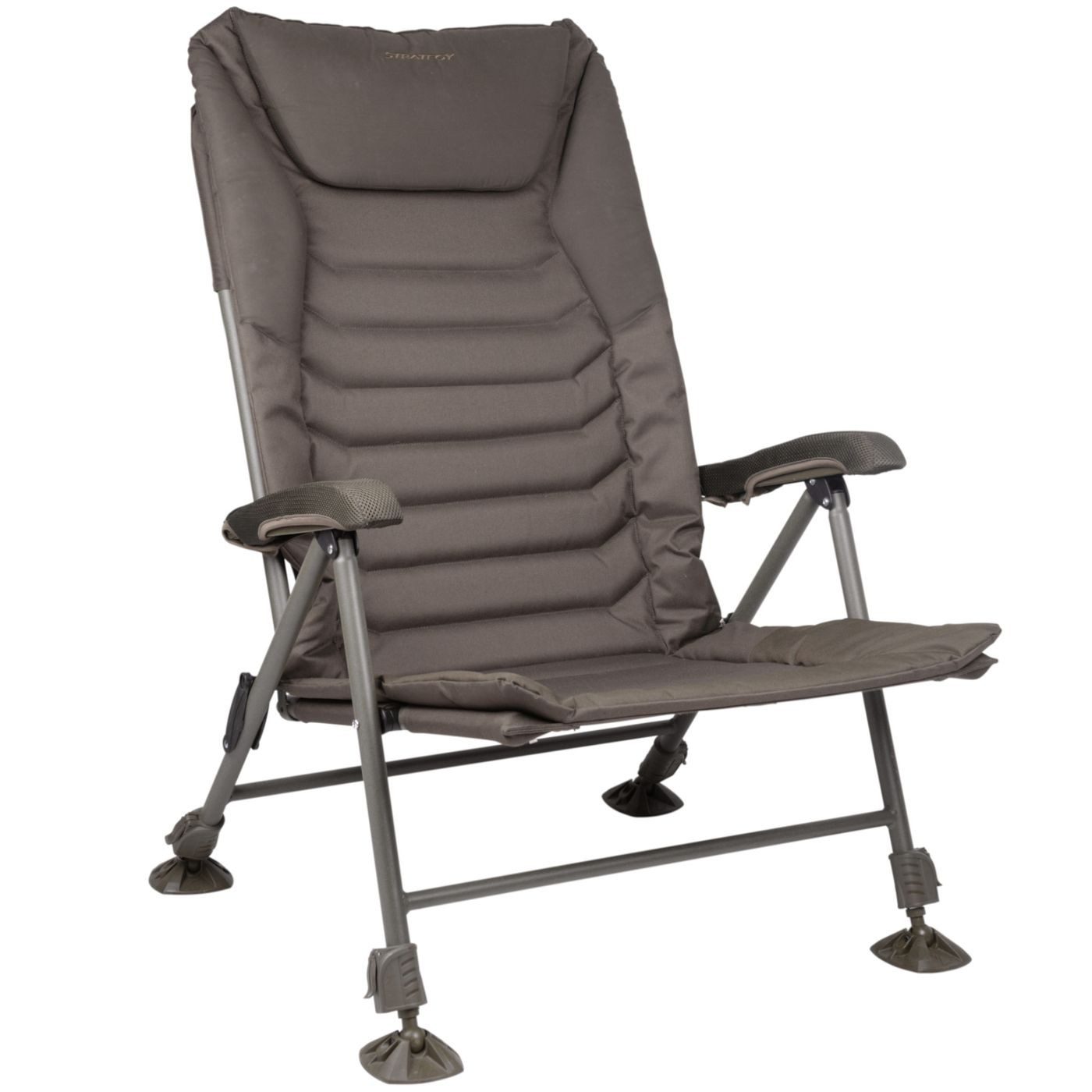 Strategy Lounger XL Chair - Karpfenstuhl - Der Angelstuhl von Strategy bietet einen hohen Komfort und ist sehr gut für das Ansitzfischen geeignet. Der Stuhl ist in allen Richtungen überdimensioniert und sorgt damit für ein hohes Maß an Bequemlichkeit, zudem lässt er sich in einem großen Winkel nach hinten kippen. Die dick gepolsterten Armlehnen tragen zum Komfort bei und halten die Arme im Sommer kühl und im Winter angenehm warm. Der Karpfenstuhl besitzt ein langes Untergestell, dass die Beinunterstützung maximiert. Die Einstellung ist sehr simpel und erfolgt einfach durch Anheben der Seitenarme und das anschließende Назадlehnen.