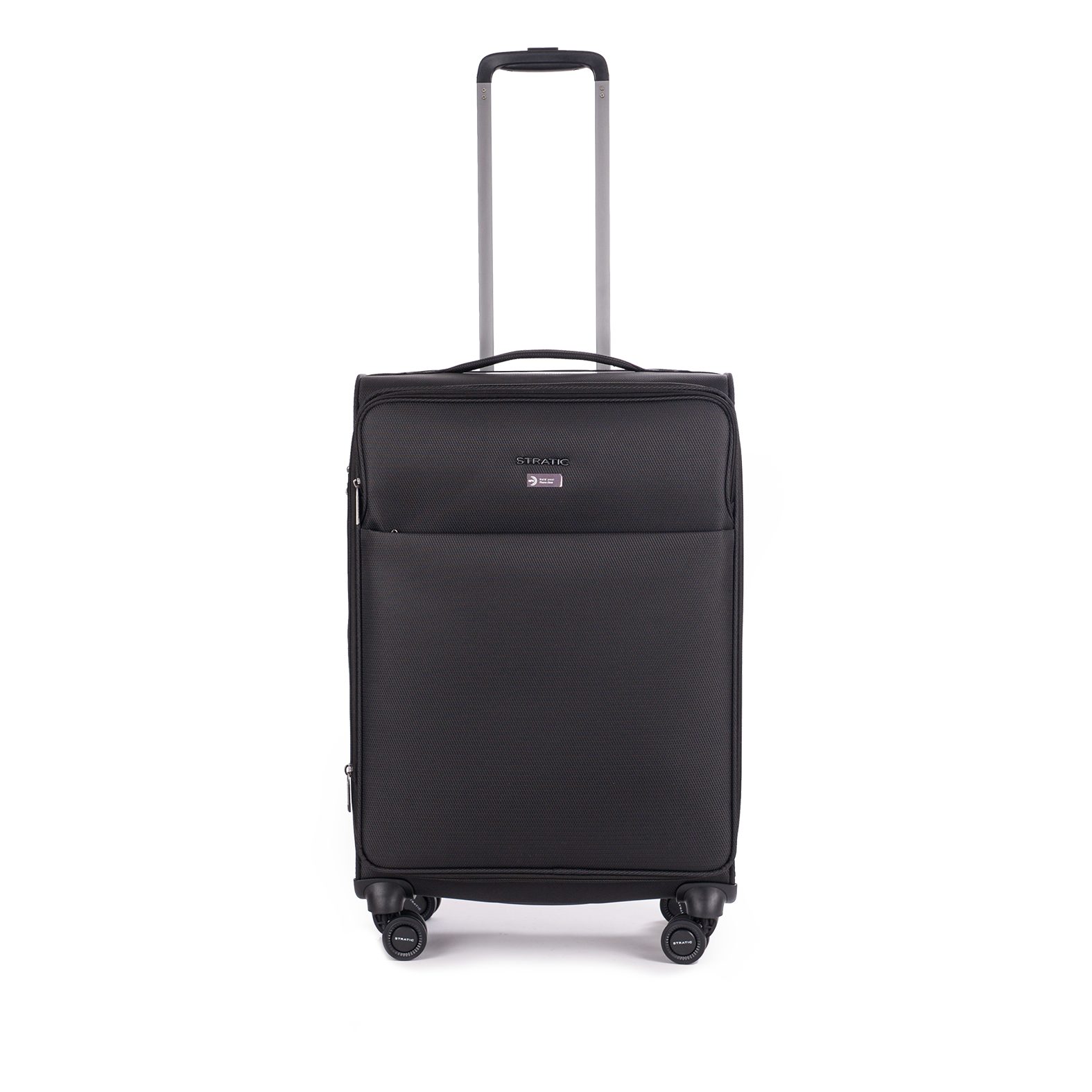 Der Всеskönner - Stabil & extraleicht. M – Der Koffer für die einwöchige Reise. Patentierte Leichtbauart trifft bei der STRATIC LIGHT+-Serie auf stabile Haltbarkeit & großzügige Nutzungsmöglichkeiten. Ein leichtläufiges 4-Doppelrollensystem, getestet auf 25km, und ein ergonomisch geformter Griff, an einem 4-fach ausziehbaren Aluminium-Teleskopgestänge, lassen den super leichten STRATIC LIGHT+-Koffer, Размер M, sehr komfortabel führen und auch voll bepackt ist er so sehr wendig und leichtläufig. Das sehr geräumige Hauptfach des STRATIC LIGHT+ ist mit fein gewebtem Polyester und einem hochwertigen Reißverschluss mit Metallanfasser ausgestattet. Im Kofferinnenraum befinden sich ein großzügiges Hauptfach mit hoch belastbaren Kreuzspanngurten sowie ein Reißverschluss-Netzfach im Deckel des Koffers für flache Utensilien. Für höchstes Packvolumen ist der STRATIC LIGHT+ in Размер M über einen zusätzlichen Reißverschluss am Deckelfach noch größentechnisch erweiterbar. Die Ausstattung mit einem TSA-Schloss für Reisen in die USA und Großbritannien ist selbstverständlich. Es ist durch den Zoll einfach ohne Aufbruch zu öffnen. Tragegriffe sind an der Kofferoberseite und seitlich des Koffers vorhanden. Neu ist die Ausstattung mit dem STRATIC CONNECT NFC-Chip. Außenmaterial: Wasserabweisendes, leichtes Polyester-Material für Langlebigkeit & vielfältige Einsatzmöglichkeiten. Voller Reparaturservice ist beim Kauf inkludiert. Garantie: 5 Jahre. STRATIC CONNECT: Zukünftig werden alle STRATIC-Kofferserien mit einem NFC-Chip ausgestattet. Jeder Chip hat eine einzigartige und nicht fälschbare ID. So ist es auch möglich, die Koffer App-basiert zu steuern und alle nötigen Infos rund um sein Gepäck zu erhalten. In der verschlüsselten App erhalten Sie Produkt- und Firmeninformationen, es gibt einen Packberater, die Möglichkeit, Packlisten zu erstellen, Sie können für den „Lost and Found“ Check Ihre Kontaktdaten hinterlegen und – last but not least – wird Ihr Co2-Fussabdruck von STRATIC mit Climate Coins für Projekte kompensiert.