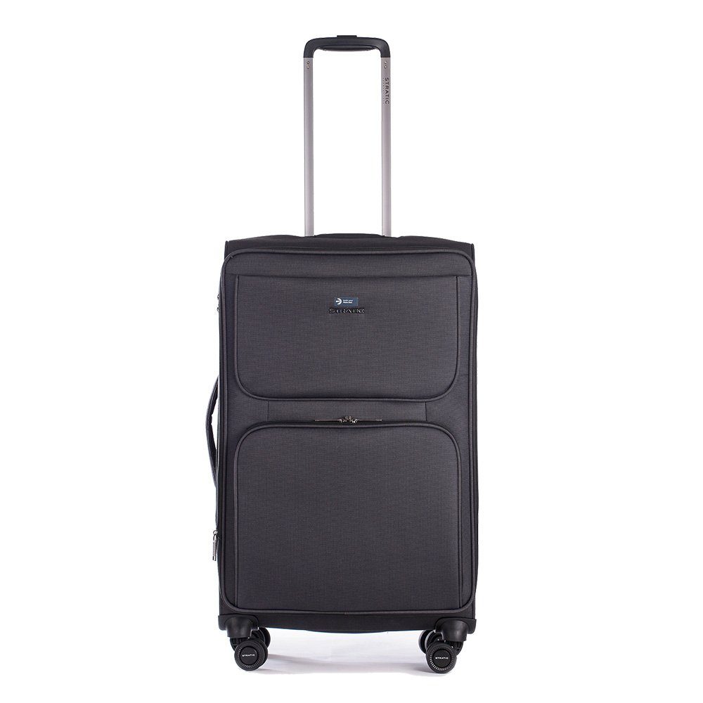 Außenausstattung | Arretierbares und versenkbares Druckknopf-Trolleysystem Fronttaschen mit Reißverschluss Volumenerweiterung integriertes Adressschild verstärkte Ecken |