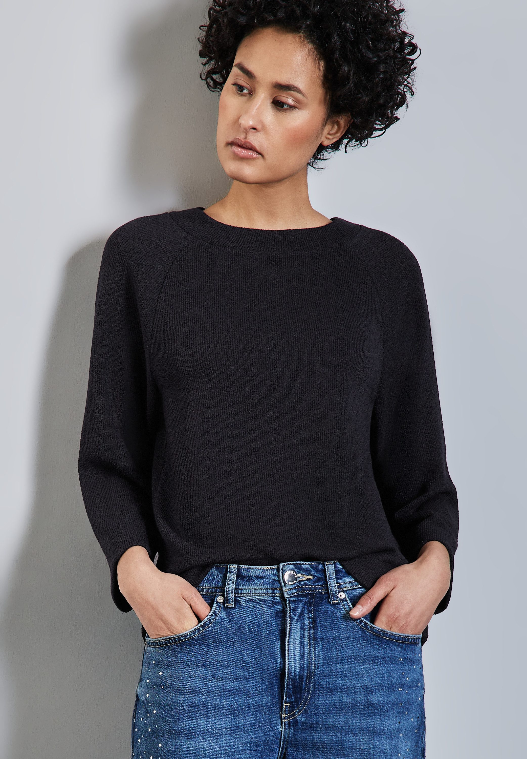 Schau dir den 3/4 Arm-Pullover von STREET ONE mal genauer an. Die 3/4-langen Ärmel enden in einem Bündchen, das für guten Sitz sorgt. Dieser Pullover hat einen U-Boot-Ausschnitt und ist taillenbedeckend sowie basic geschnitten und umspielt deinen Oberkörper locker.