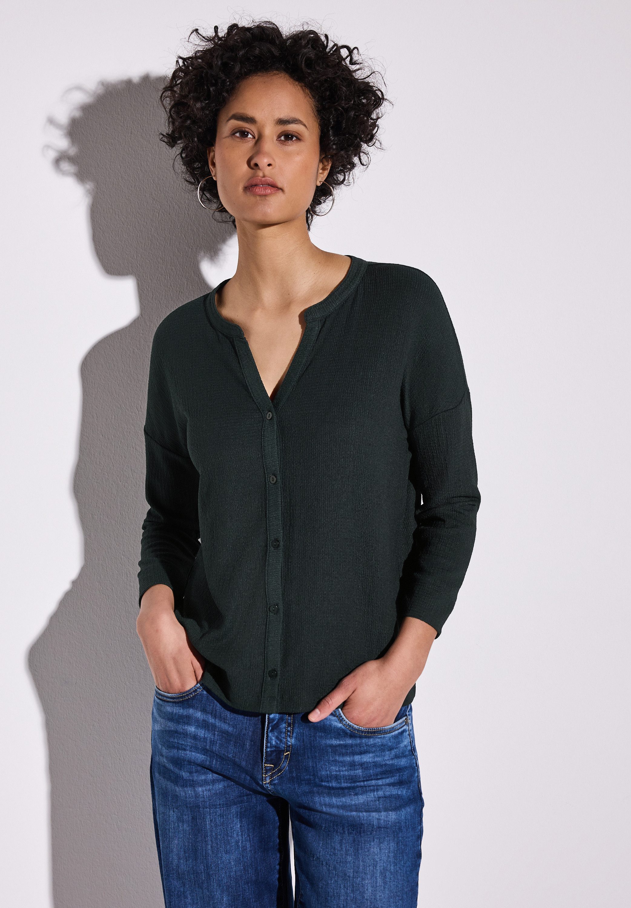 Mit der Shirtjacke von STREET ONE lassen sich einfach neue Styles zusammenstellen. Die Shirtjacke hat eine Knopfleiste. Dieses Shirt hat einen Rundhalsausschnitt und ist taillenbedeckend sowie basic geschnitten und umspielt deinen Oberkörper locker.