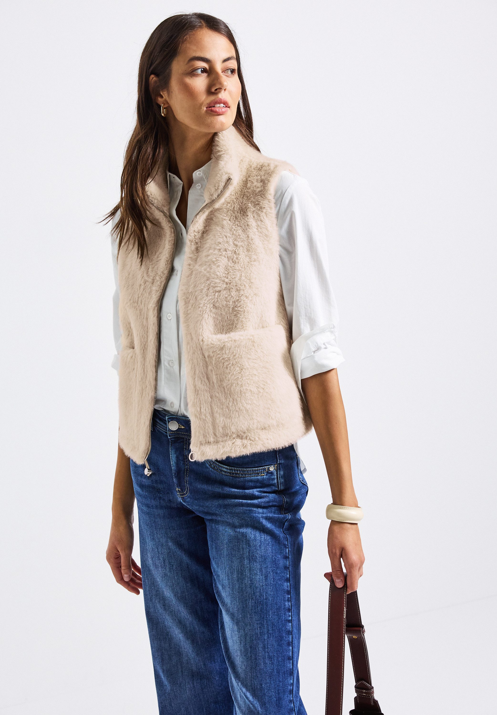 Zum Warmhalten über deinem T-Shirt oder Pullover an kühlen Tagen — die Damen-Fellimitatweste von STREET ONE ist eine gute Idee für deine Outfits!