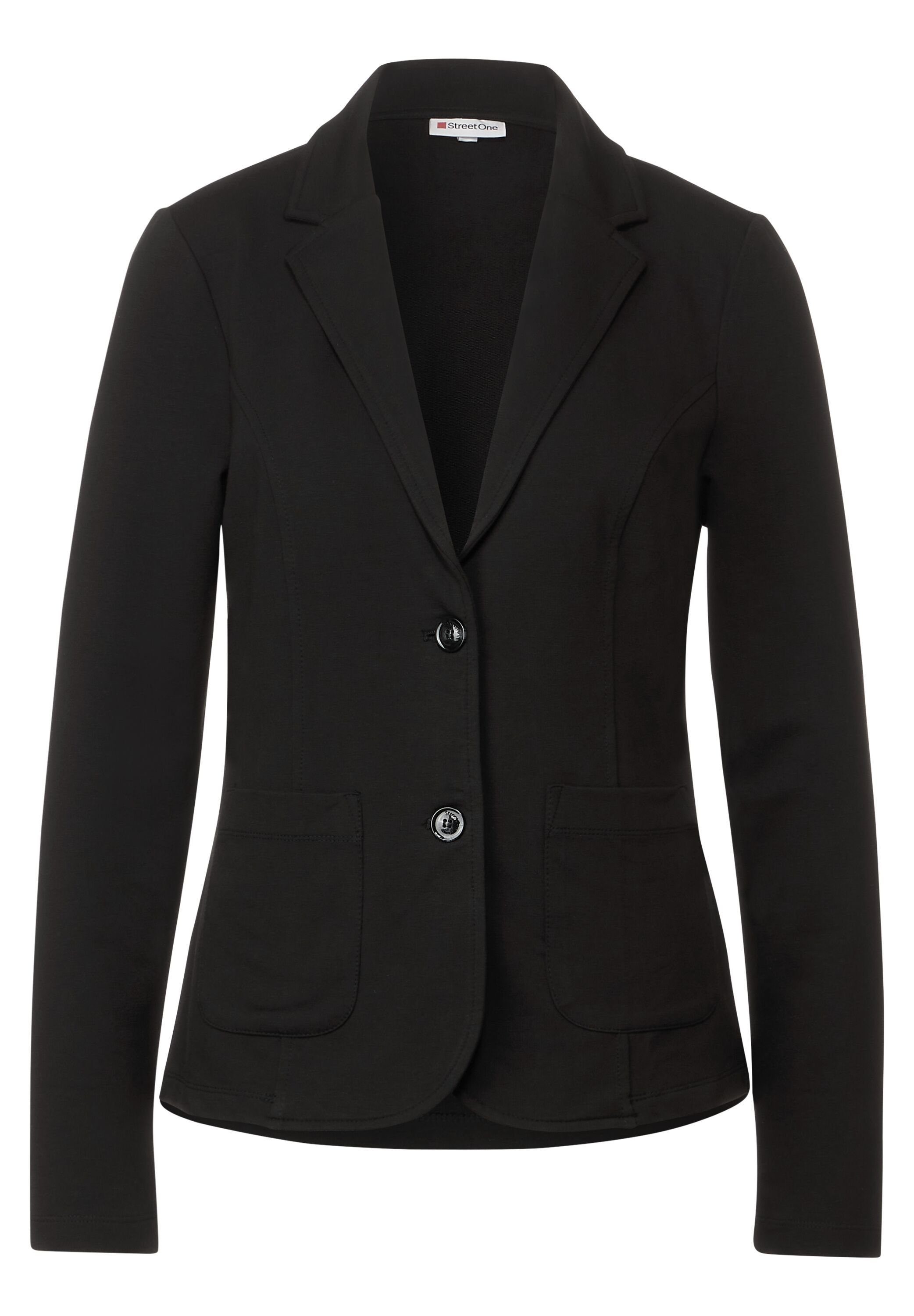 Für kalte Tage und einen selbstbewusst femininen Auftritt ist der feminine Blazer von Street One eine gute Wahl. Prägende Elemente sind hier der farbintensive Unilook genauso wie der feminine Style. Die angenehm zu tragenden Eigenschaften werden unterstützt von klassisch geschnittener Form. Dabei sind es vor allem die Taschen, die besondere Aufmerksamkeit auf den Damenblazer lenken. Darüber hinaus bildet am Damenblazer der lange Arm einen dezent sportiven Look. In der Gesamtheit entsteht so ein Damenblazer , der sich dank der attraktiven und abwechslungsreichen Gestaltung immer wieder neu und individuell kombinieren lässt. Das bequeme Revers unterstützt den femininen Style und macht den Damenblazer bequem und trageangenehm. Die Knöpfe machen die Nutzung einfach und bequem. Klassisch geschnitten fällt das softe Baumwoll Mischgewebe verspielt fließend und sorgt so für die angenehm