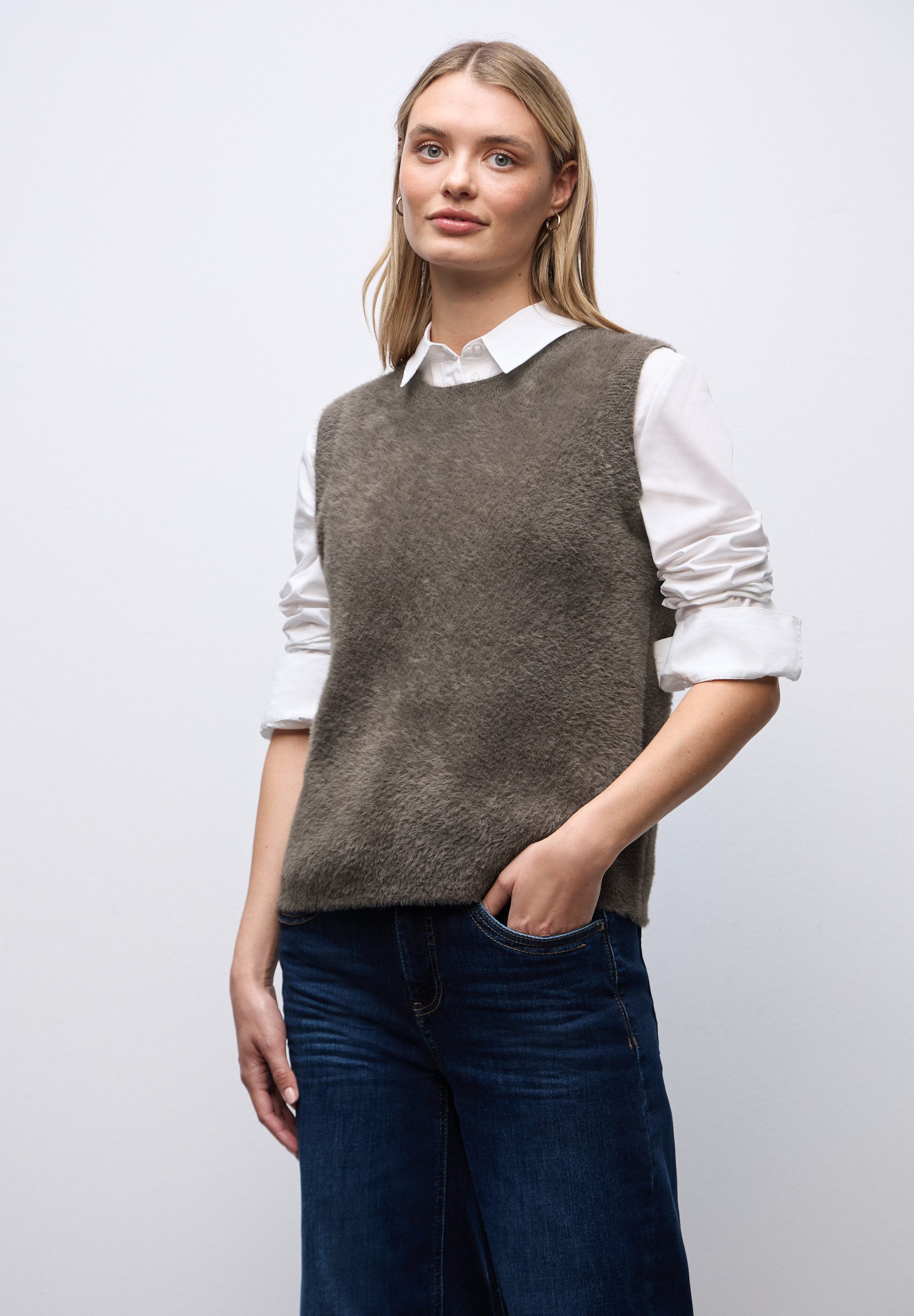 Der Pullunder von STREET ONE ist nicht nur an kalten Tagen eine praktische Wahl, sondern auch ein Feel-good-Oberteil für zu Hause. Dieser Pullover hat einen Rundhalsausschnitt und ist hüftlang sowie basic geschnitten und umspielt deinen Oberkörper locker.