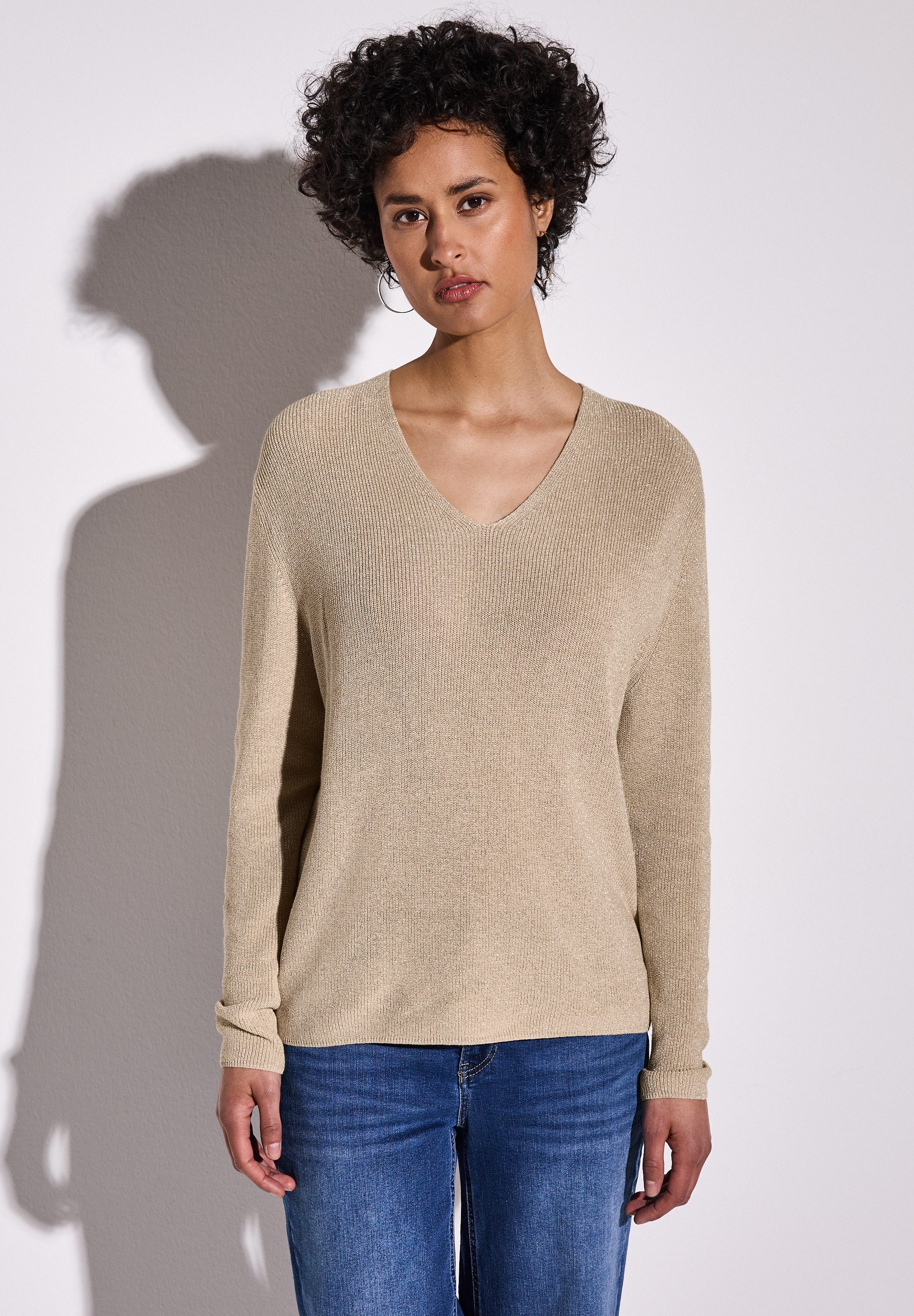 Gesucht und gefunden: Schau dir den Strickpullover von STREET ONE mal genauer an. Dieser Pullover hat einen V-Ausschnitt und ist taillenbedeckend sowie basic geschnitten, wodurch dein Oberkörper locker umspielt wird.