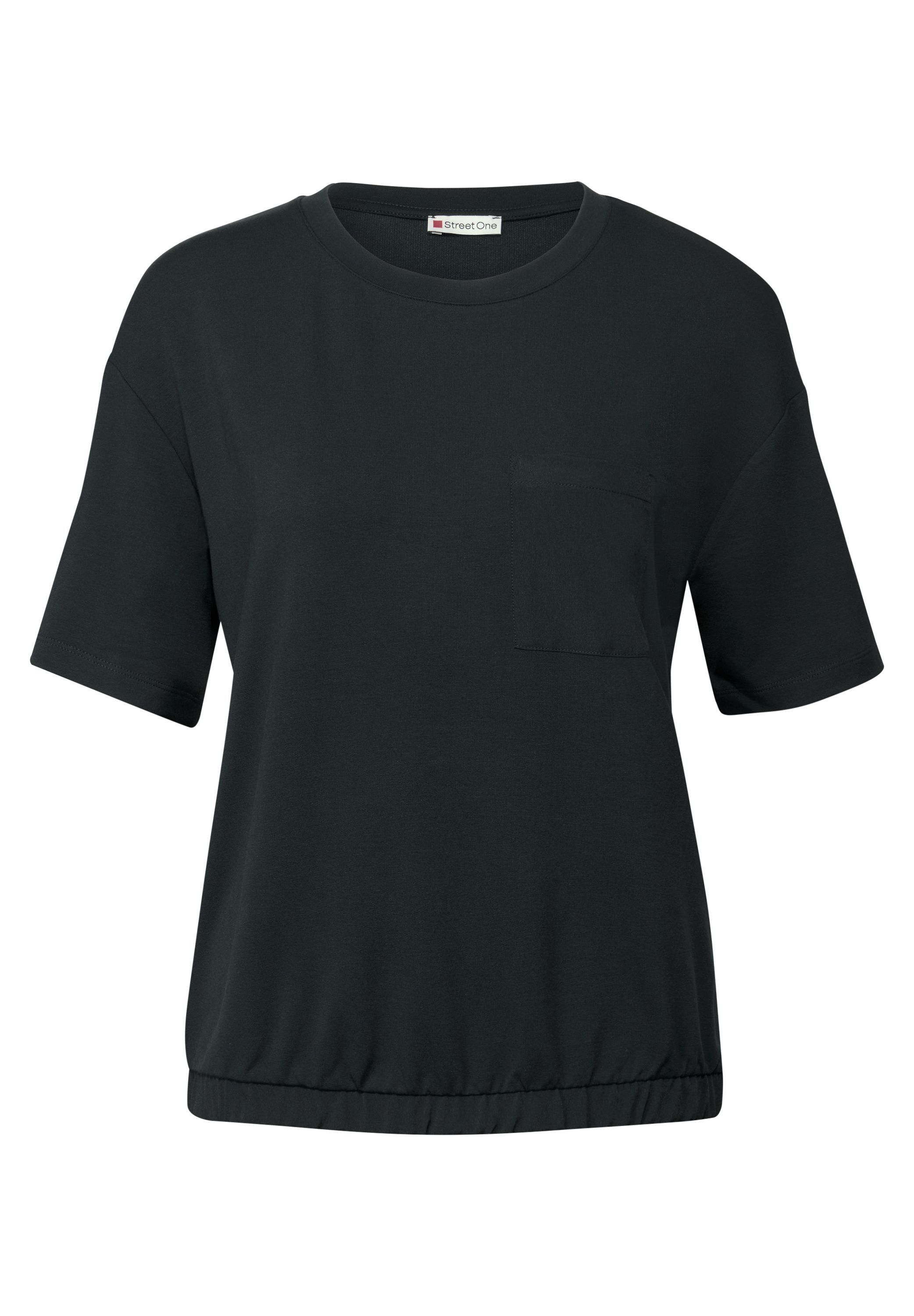 Schau dir das T-Shirt von STREET ONE mal genauer an. Dieses Shirt hat einen Rundhalsausschnitt und ist taillenbedeckend sowie basic geschnitten, sodass dein Oberkörper dezent in Szene gesetzt wird.