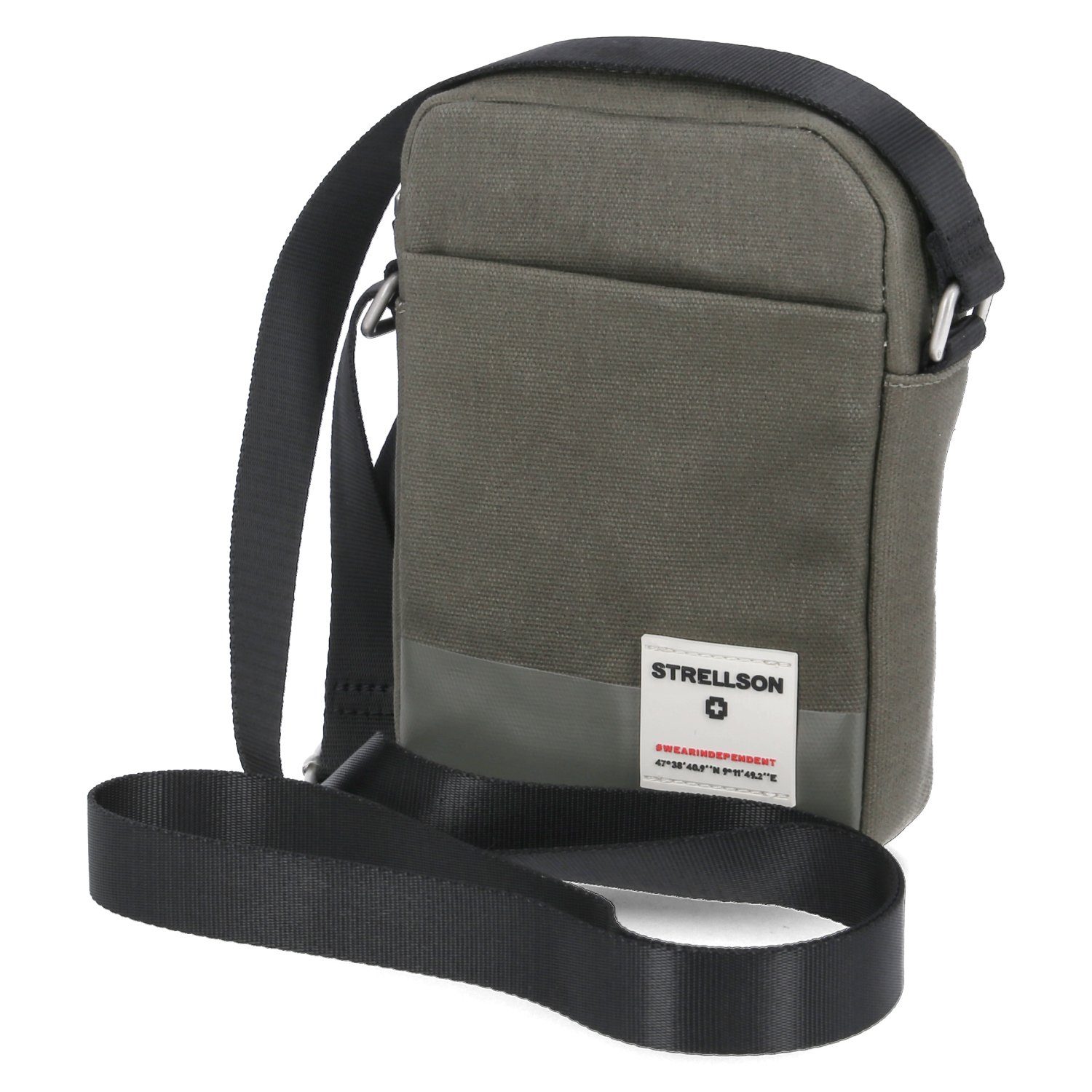 Strellson Herren Schultertasche/ Umhängetasche CLINT Grün Textil - Markenpatch auf der Vorderseite - zum Teil aus recycelten Materialien - Metallelemente in silberner Optik - verstellbarer Schultergurt - ein vorderes und ein hinteres Steckfach - Reißverschluss-Hauptfach mit einem Steckfach und einem Reißverschlussfach - Maße: ca. 19 x 13 x 4,5 cm (HxBxT)