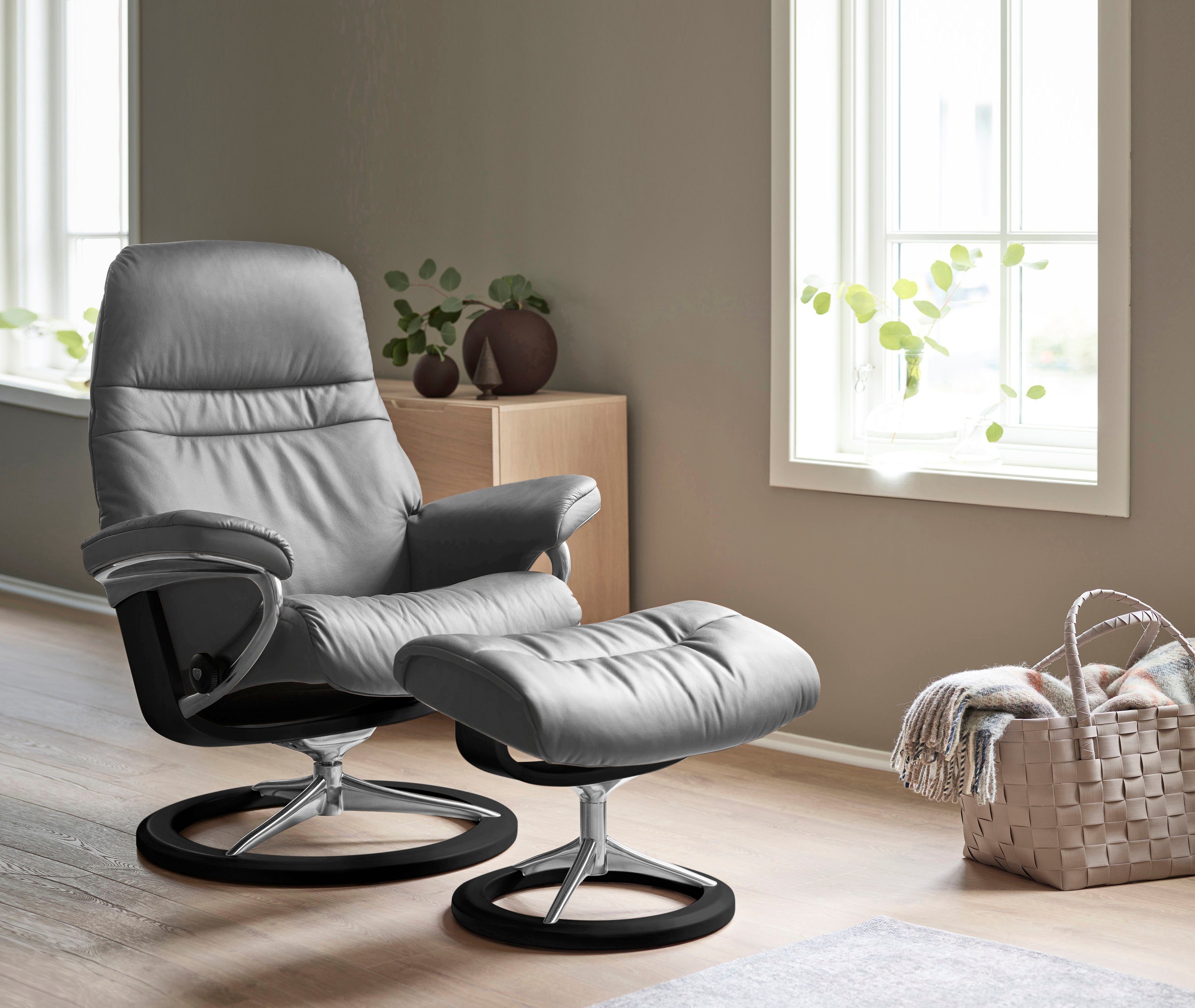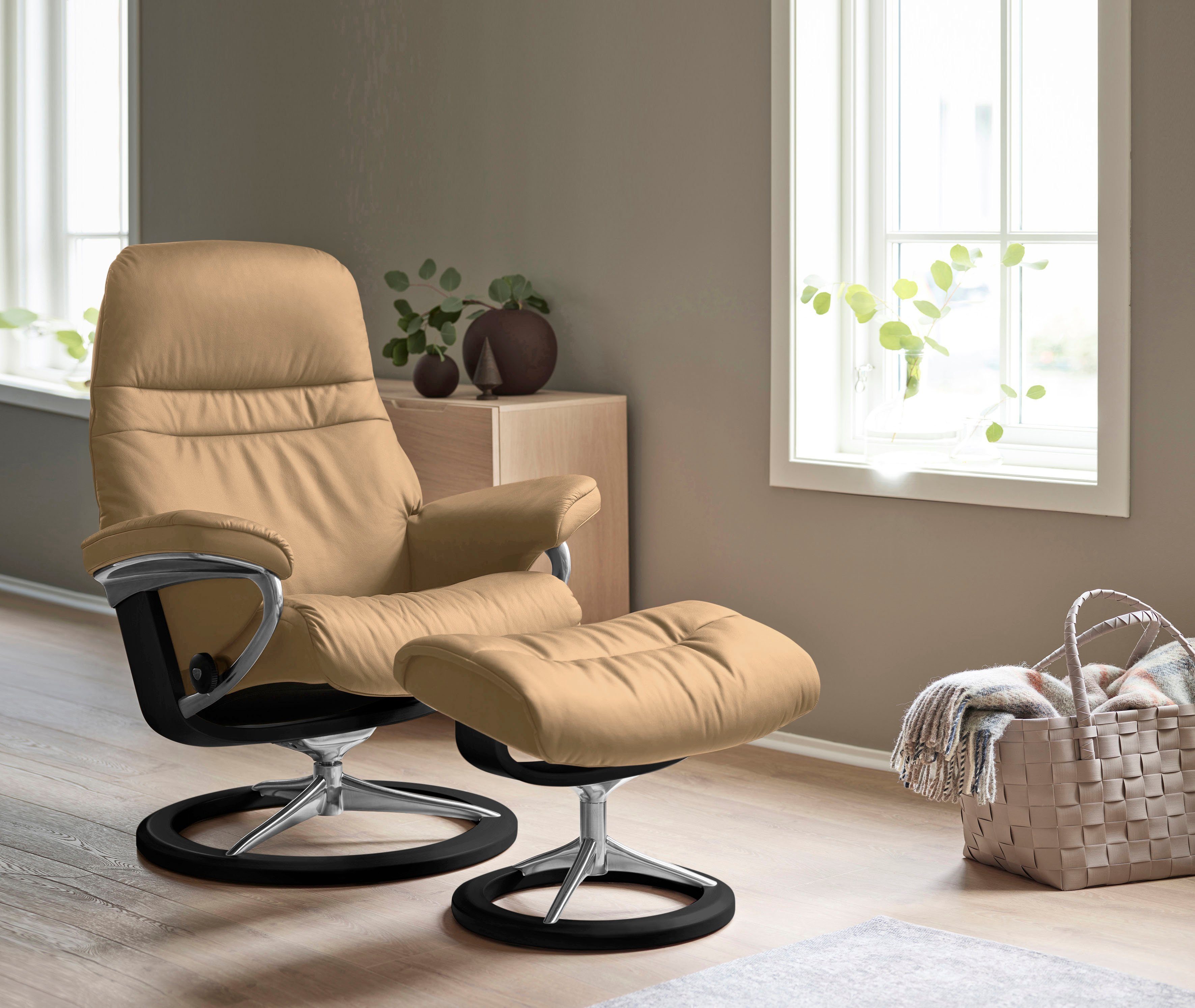 Wussten Sie schon, dass ein Stressless® Sessel tatsächlich ein mechanisches Präzisionsinstrument ist, bei dem sich hinter dem Sitzkomfort eine Vielzahl an Patenten verbirgt? Der »Sunrise« ist ein klassisches Stressless® Design für die schönen Augenblicke am Morgen. Unser patentiertes Plus™System sorgt für eine gute Stütze vom Rücken und Lendenwirbel in allen Positionen. Der Hocker hat eine integrierte Gleitfunktion, die den Bewegungen Ihrer Beinen folgt. Auf diese Weise gleicht der bequemste Bequemsessel der Welt einer Offenbarung beim Komfort. Verborgen unter den zeitlosen Konturen finden Sie die präzise Mechanik und die speziellen Patente, die Stressless® zu dem gemacht haben, das es heute ist: eine der weltweit führenden Marken für Bequemsessel.