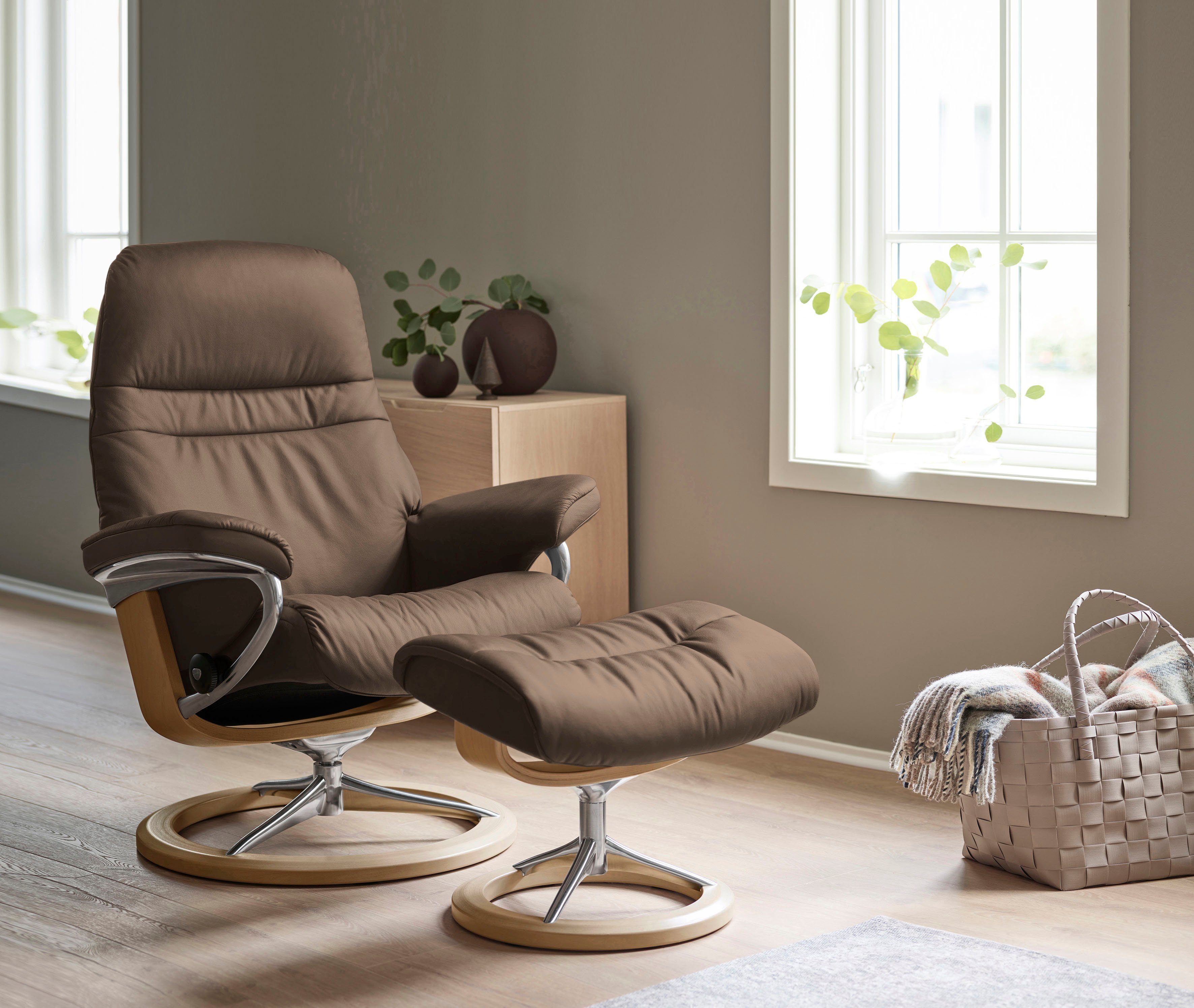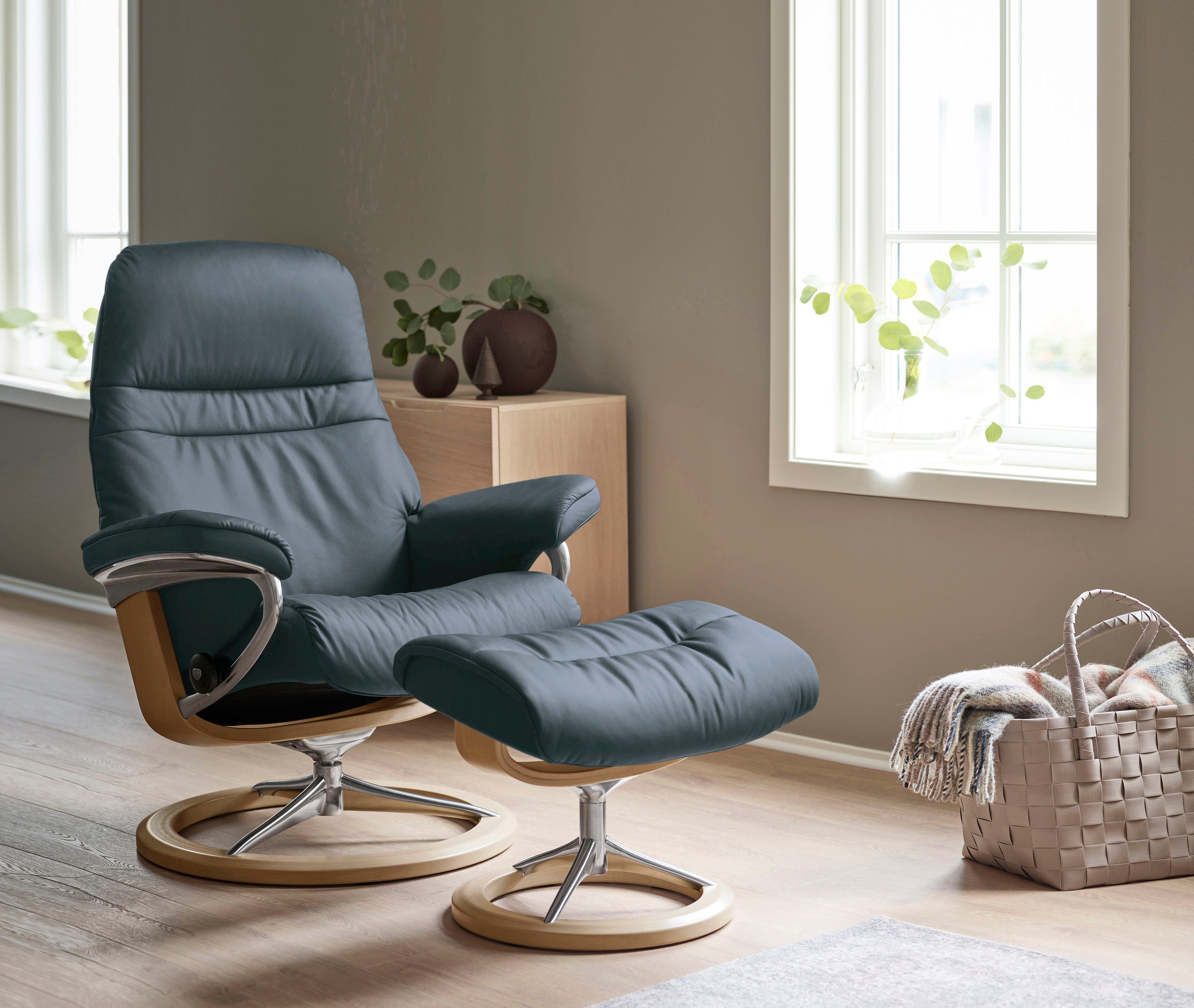 Serienhinweise | Die Bequemsessel »Sunrise« sind mit einer modernen Signature Base oder mit einer klassischen Classic Base erhältlich. Das Classic Base Gestell kann auch mit dem LegComfort™ ausgestattet werden. Впередe Gestelle, Größen und Zubehör siehe Serienartikel. |