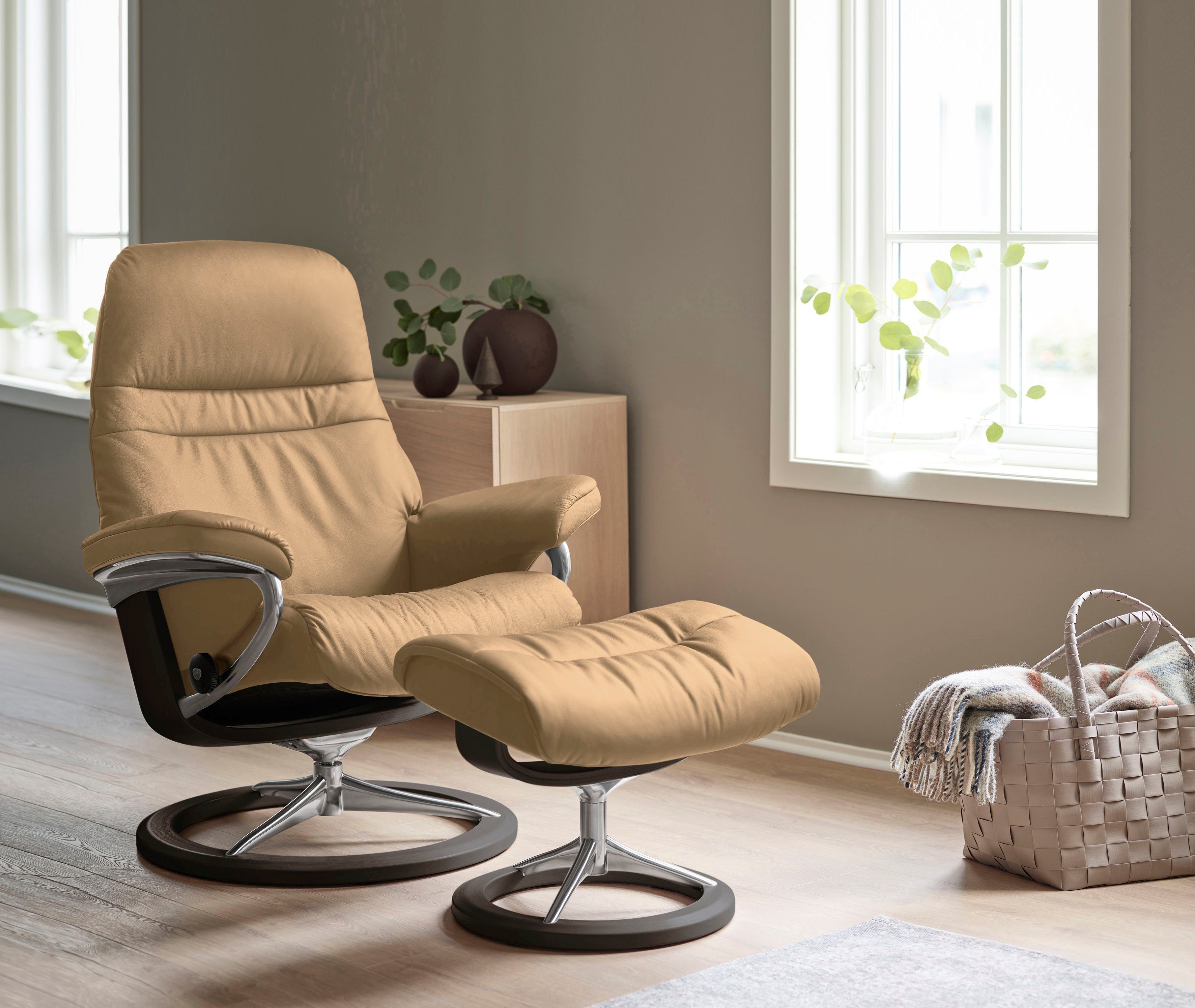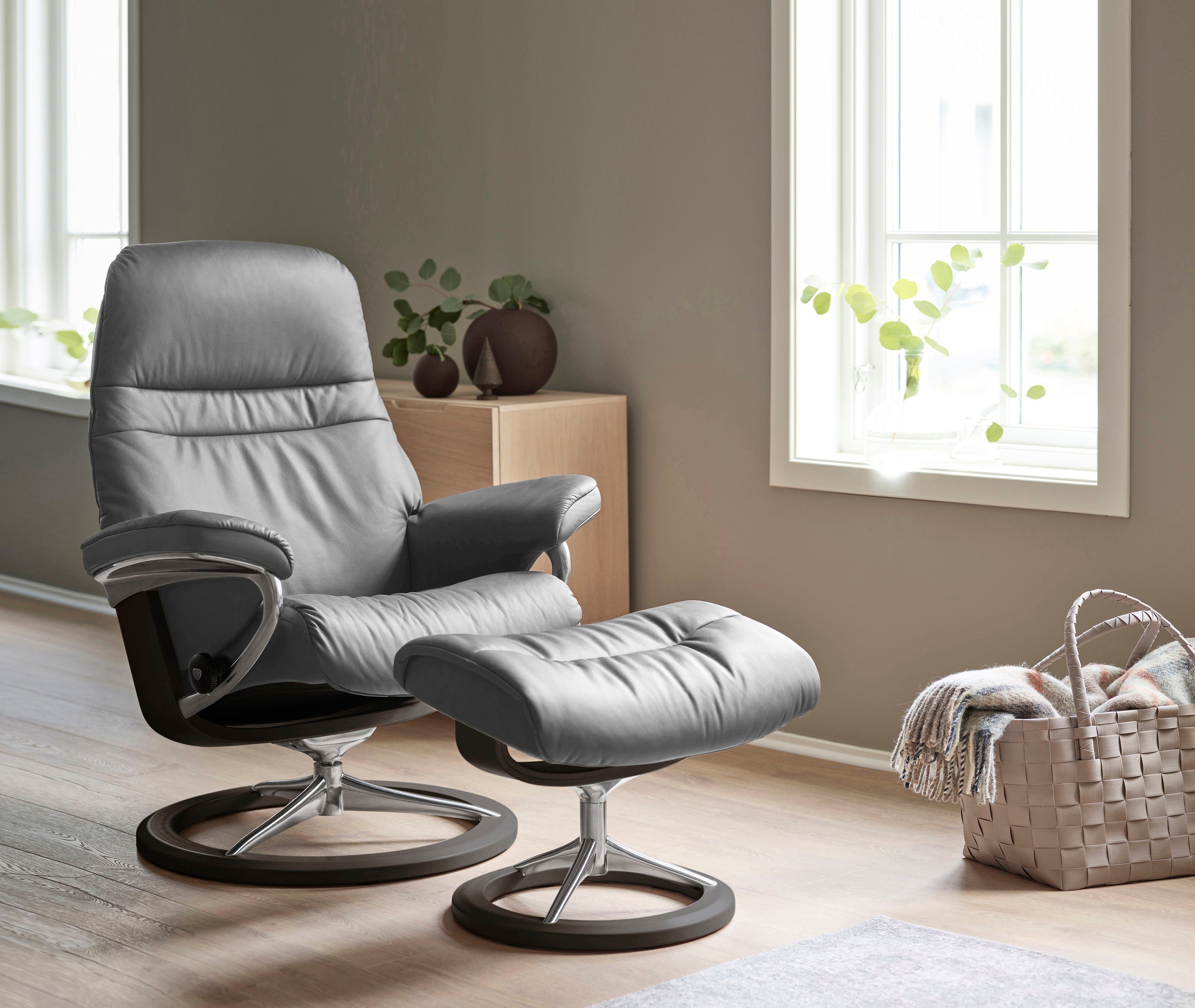 Serienhinweise | Die Bequemsessel »Sunrise« sind mit einer modernen Signature Base oder mit einer klassischen Classic Base erhältlich. Das Classic Base Gestell kann auch mit dem LegComfort™ ausgestattet werden. Впередe Gestelle, Größen und Zubehör siehe Serienartikel. |