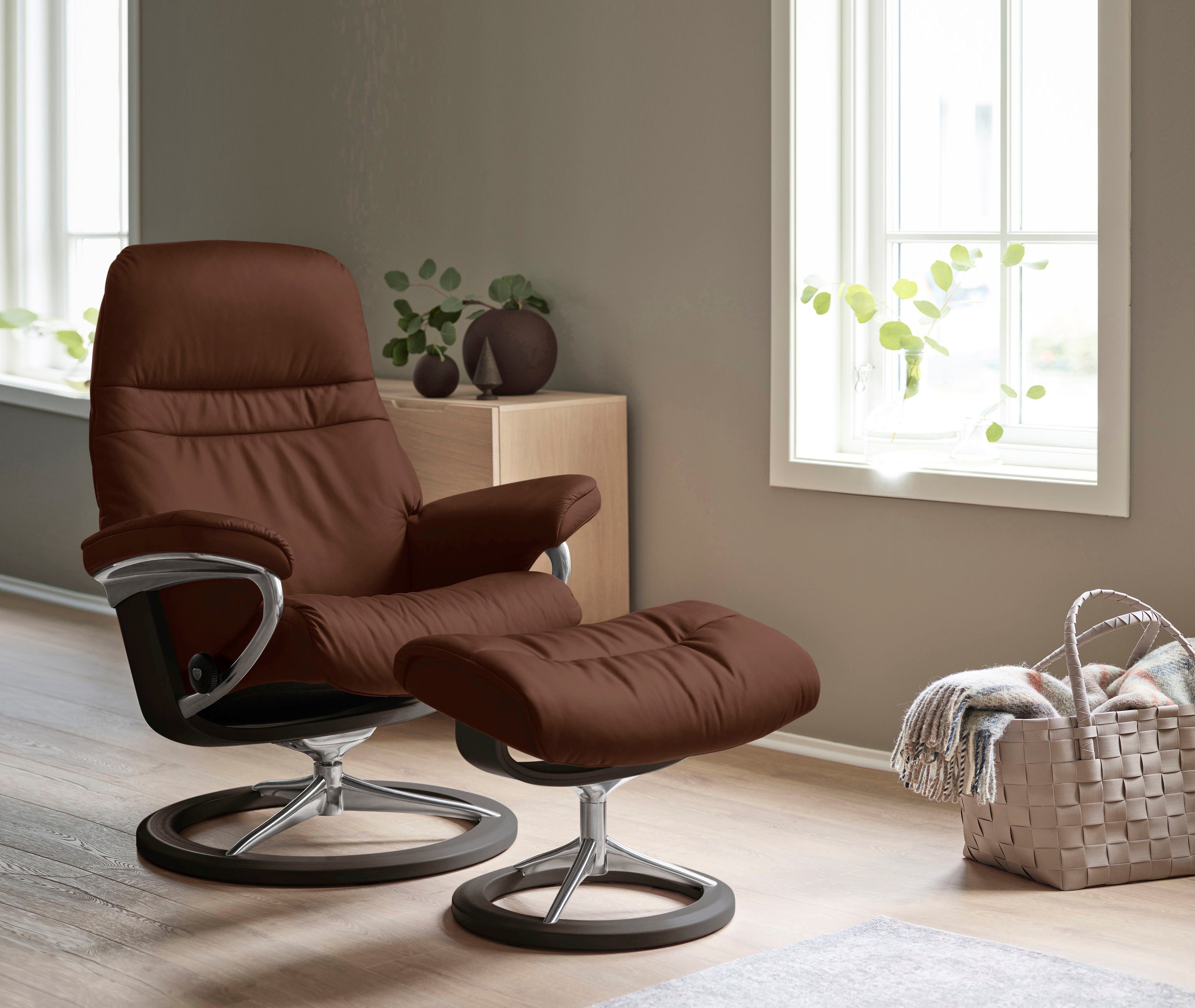 Serienhinweise | Die Bequemsessel »Sunrise« sind mit einer modernen Signature Base oder mit einer klassischen Classic Base erhältlich. Das Classic Base Gestell kann auch mit dem LegComfort™ ausgestattet werden. Впередe Gestelle, Größen und Zubehör siehe Serienartikel. |