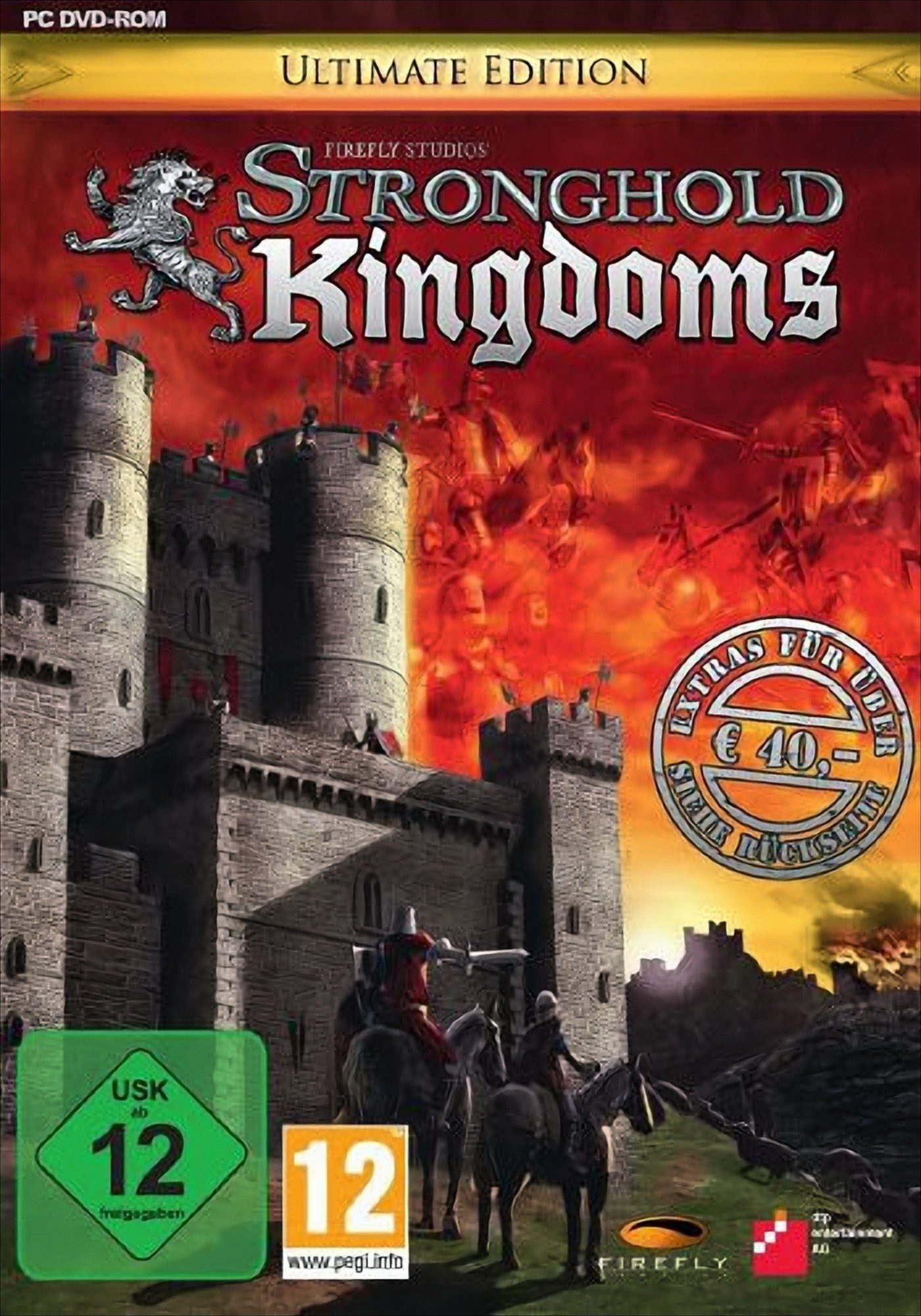 Spielbeschreibung | Erstmals gibt es ein Burgen MMO, in dem tausende Burgherren miteinander interagieren können.Der Spieler baut, erweitert und erobert mitzunehmender Macht Dörfer und Städte, baut mächtige Burgen und Angriffsmaschinerien und erkundet die unterschiedlichsten Themenbereiche einesriesigen Forschungbaums.Dabei gibt es unzählige Möglichkeiten des strategischen Vorgehens: Handel, Kampf, Landwirtschaft oder Spionage - dies sind nur einige Beispiele der Spezialisierungsmöglichkeiten.Den entsprechenden Einsatz von Blut und Schweiß vorausgesetzt kann sich der Spieler hocharbeiten - bis erschließlich zum König gekrönt wird.Die Ultimate Edition von Stronghold Kingdoms wurde speziell für begeisterte Strategen zusammengestellt und bietet neben den 2 brandneuen HD-Vollversionen der Klassiker Stronghold und Stronghold Crusaders Extreme zahlreiche wertvolle Zusatzinhalte, die jedem Burgherren die optimalen Voraussetzungen verschaffen, das anfänglich kleine, bescheidene Dorf in eine mächtige, florierende Metropole zu verwandeln.Enthält InGame Extras für über 40,- Euro!Sprache/Untertitel: DeutschHandbuch: Deutsch Medium: DVD-ROMAnzahl: 1512 MB RAM, 150 MB Festplattenspeicher, Win XP/Vista |