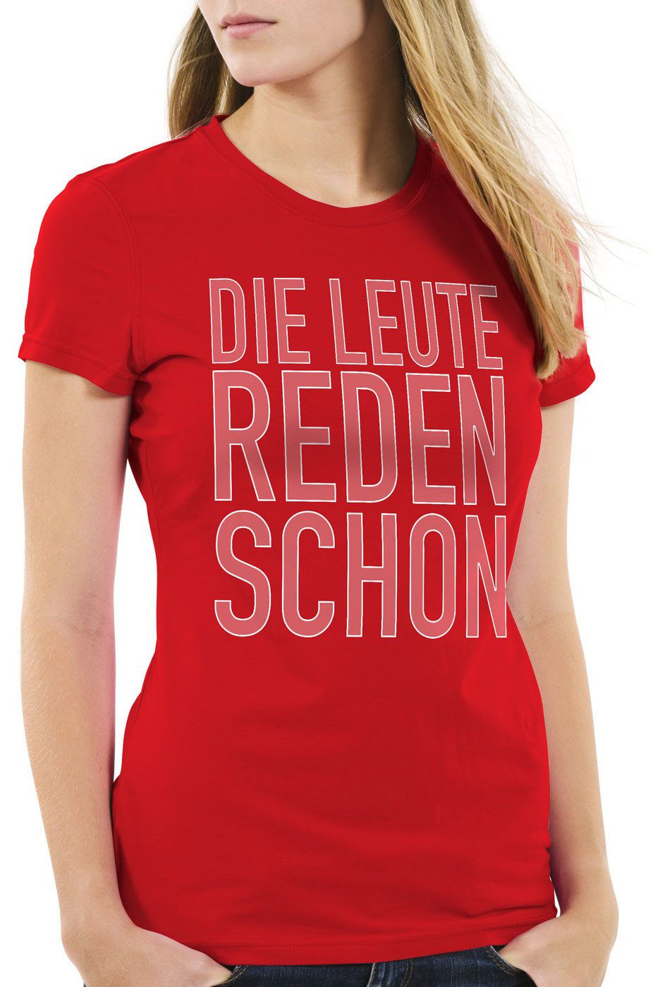 Trendiges Damen T-Shirt mit figurbetont schmalem Schnitt (Slim-Fit). Wir empfehlen mindestens eine Nummer größer zu wählen oder besser vergleichen Sie einmal unsere detaillierte Maßtabelle mit einem Ihrer T-Shirts daheim. Mit Vergleichen der Brustweite und Gesamtlänge aus der Maßtabelle mit einem Ihrer T-Shirts daheim finden Sie bereits vor dem Kauf die perfekte Größe.