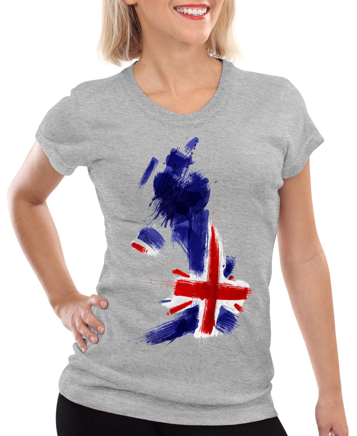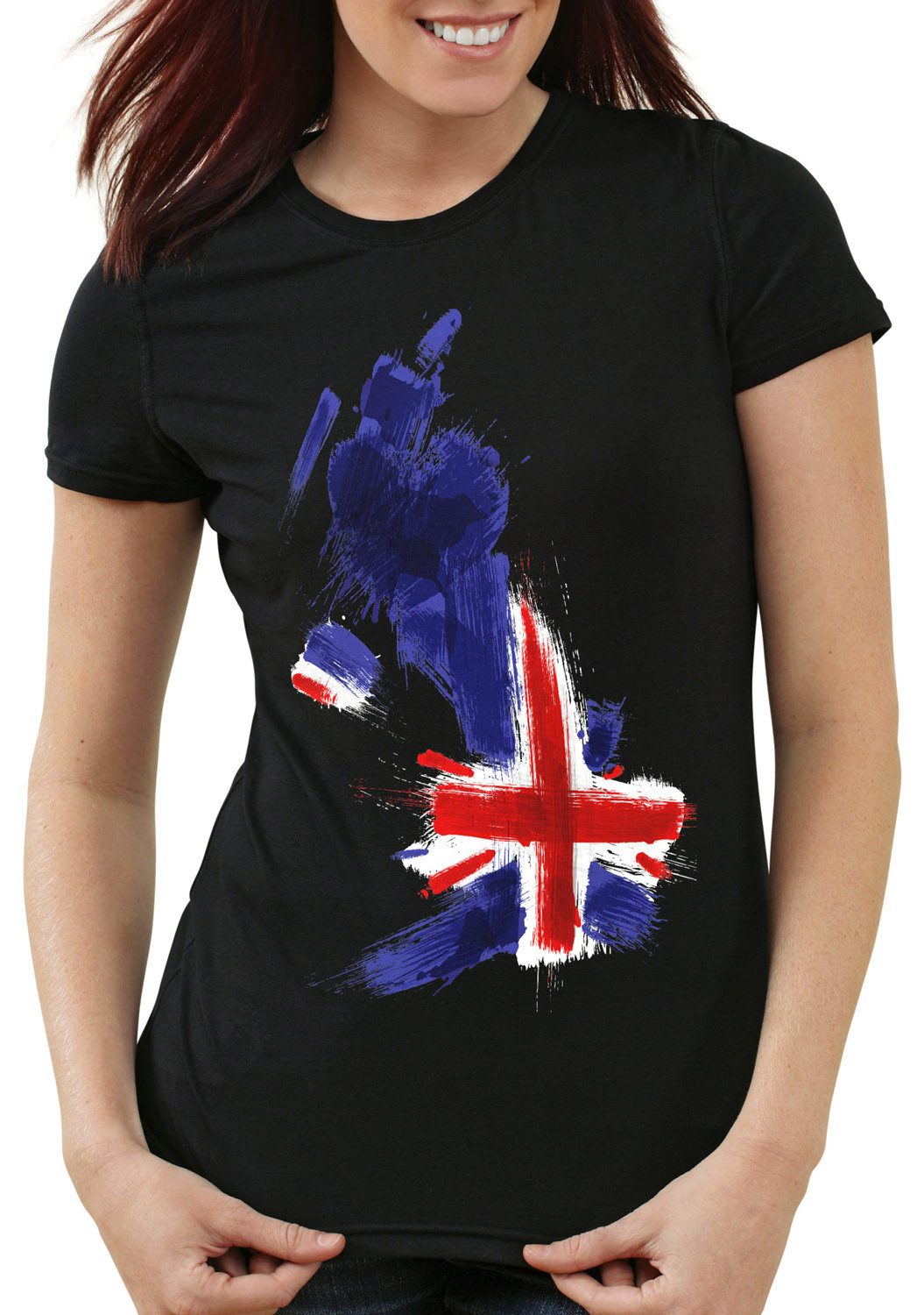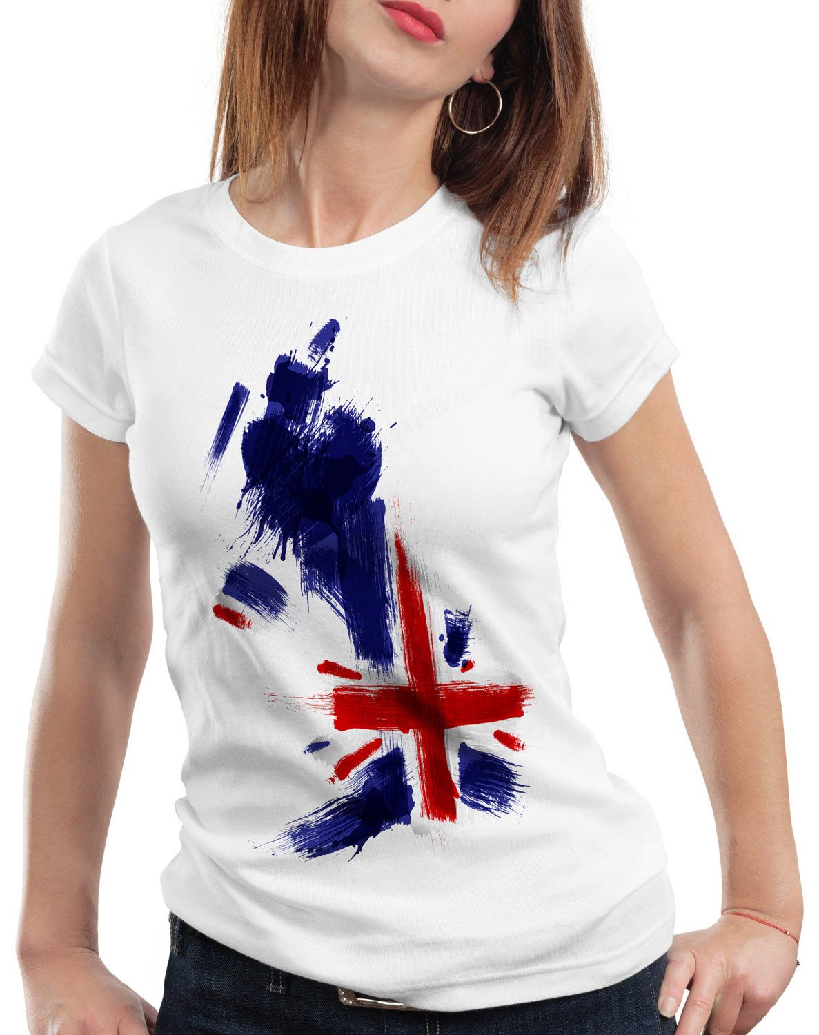 Trendiges Damen T-Shirt mit figurbetont schmalem Schnitt (Slim-Fit). Wir empfehlen mindestens eine Nummer größer zu wählen oder besser vergleichen Sie einmal unsere detaillierte Maßtabelle mit einem Ihrer T-Shirts daheim. Mit Vergleichen der Brustweite und Gesamtlänge aus der Maßtabelle mit einem Ihrer T-Shirts daheim finden Sie bereits vor dem Kauf die perfekte Größe.