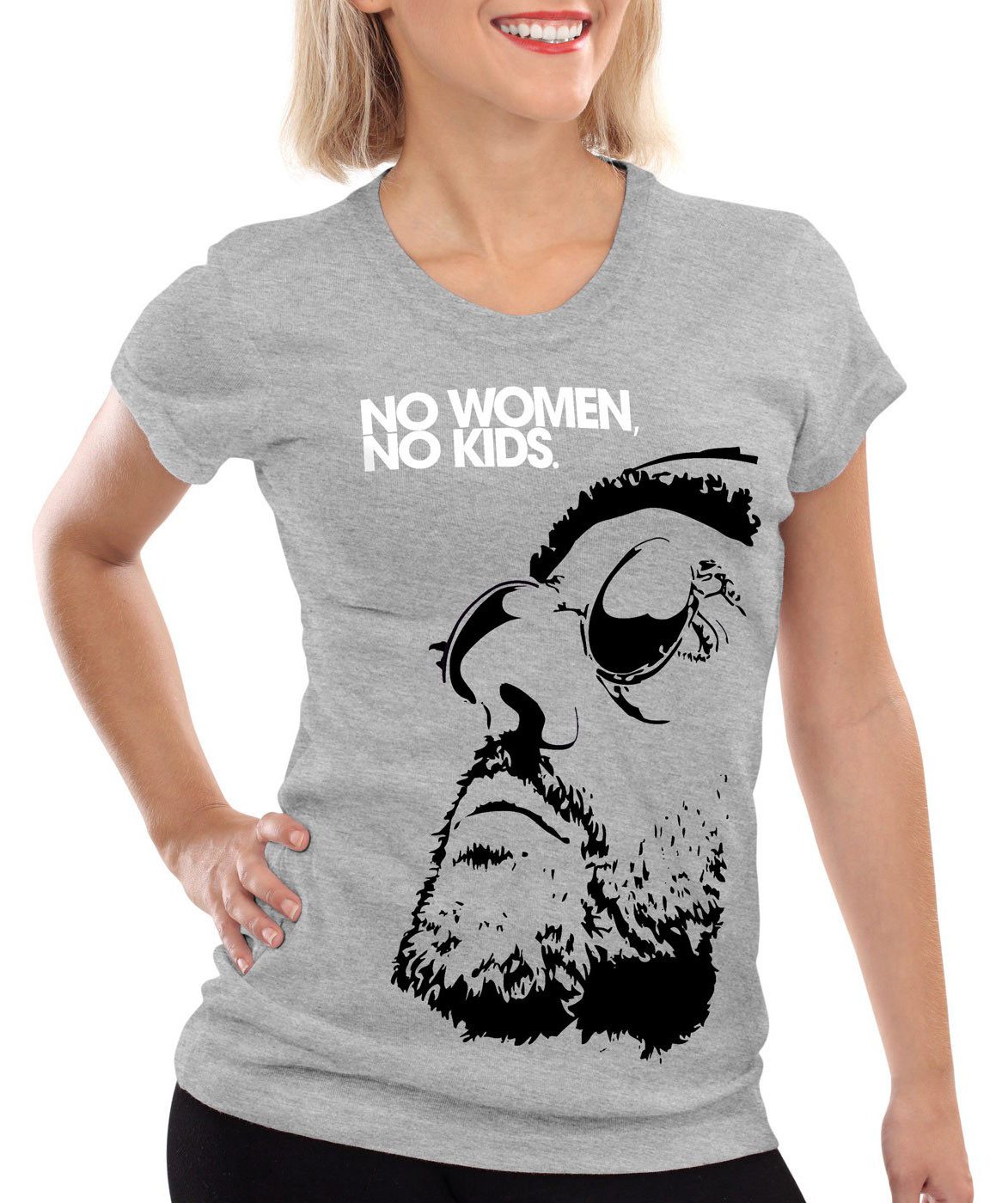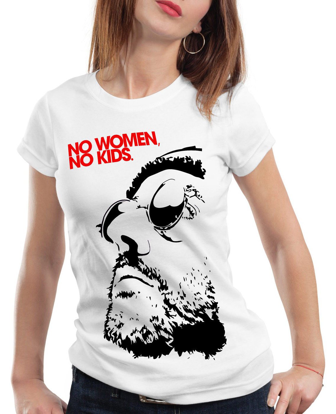 Trendiges Damen T-Shirt mit figurbetont schmalem Schnitt (Slim-Fit). Wir empfehlen mindestens eine Nummer größer zu wählen oder besser vergleichen Sie einmal unsere detaillierte Maßtabelle mit einem Ihrer T-Shirts daheim. Mit Vergleichen der Brustweite und Gesamtlänge aus der Maßtabelle mit einem Ihrer T-Shirts daheim finden Sie bereits vor dem Kauf die perfekte Größe.