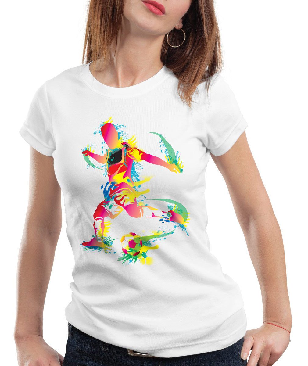 Trendiges Damen T-Shirt mit figurbetont schmalem Schnitt (Slim-Fit). Wir empfehlen mindestens eine Nummer größer zu wählen oder besser vergleichen Sie einmal unsere detaillierte Maßtabelle mit einem Ihrer T-Shirts daheim. Mit Vergleichen der Brustweite und Gesamtlänge aus der Maßtabelle mit einem Ihrer T-Shirts daheim finden Sie bereits vor dem Kauf die perfekte Größe.