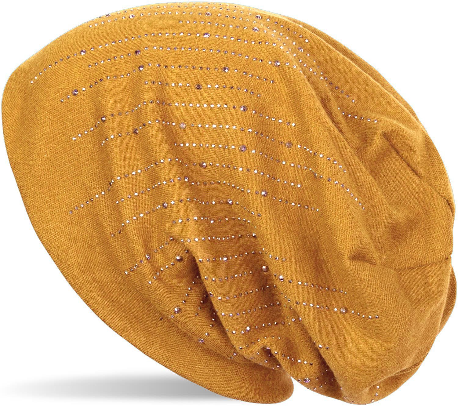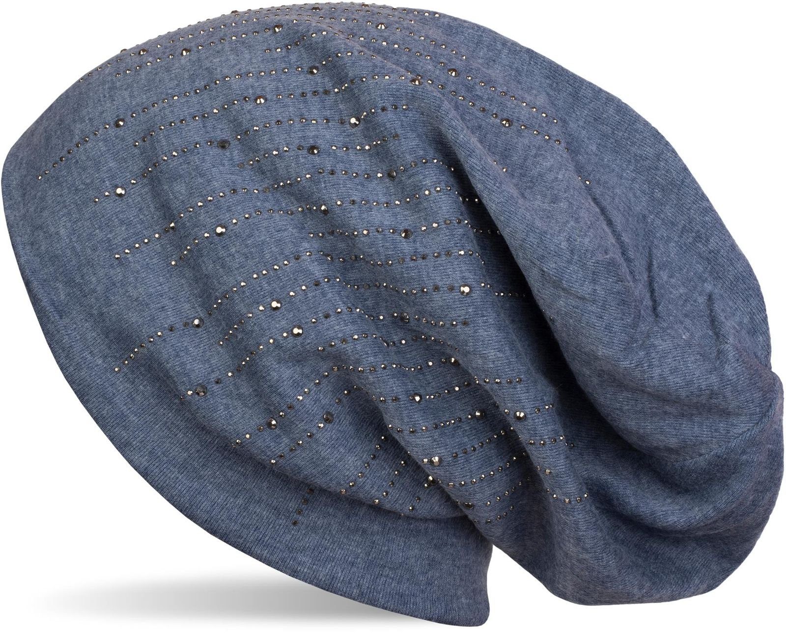 styleBREAKER edle einfarbige Beanie Mütze mit Strass Nieten im Streifen Design.