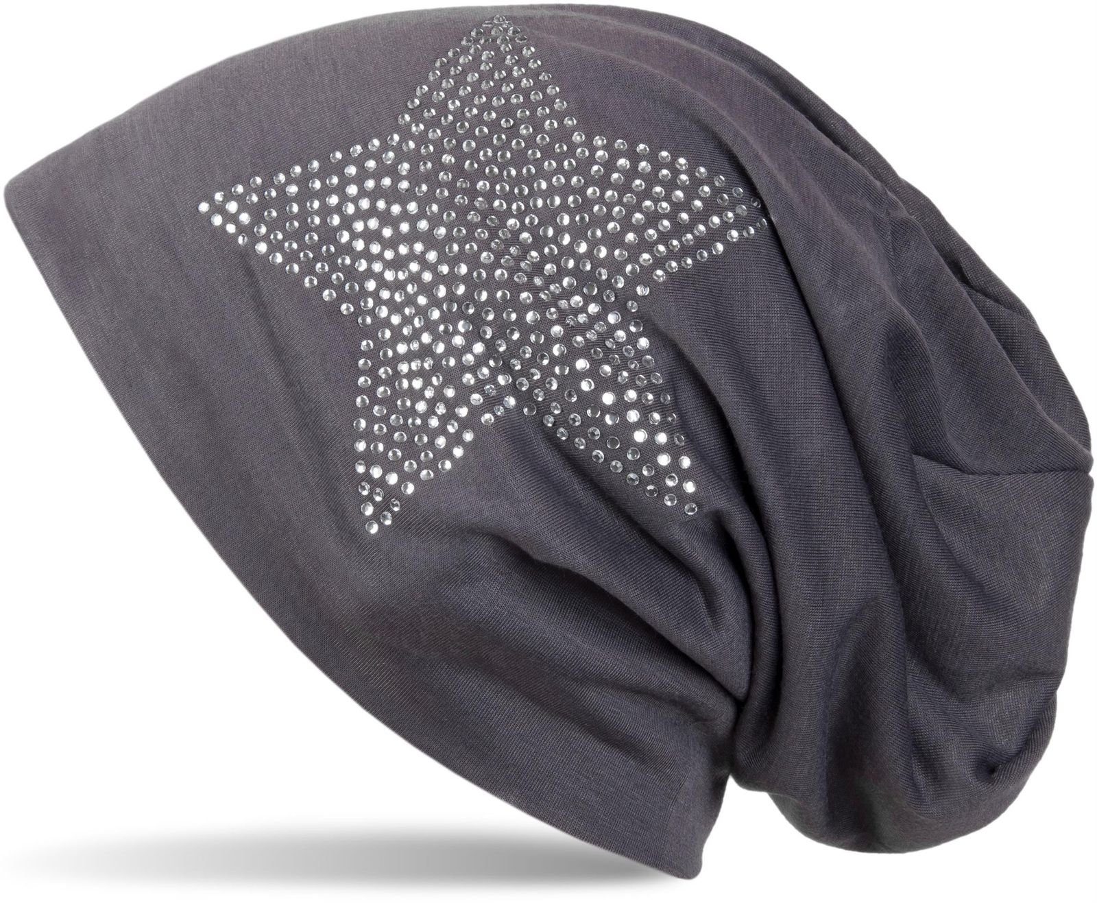 styleBREAKER leichte Beanie Mütze mit Stern Strass Applikation, Mütze mit Glitzerstern.