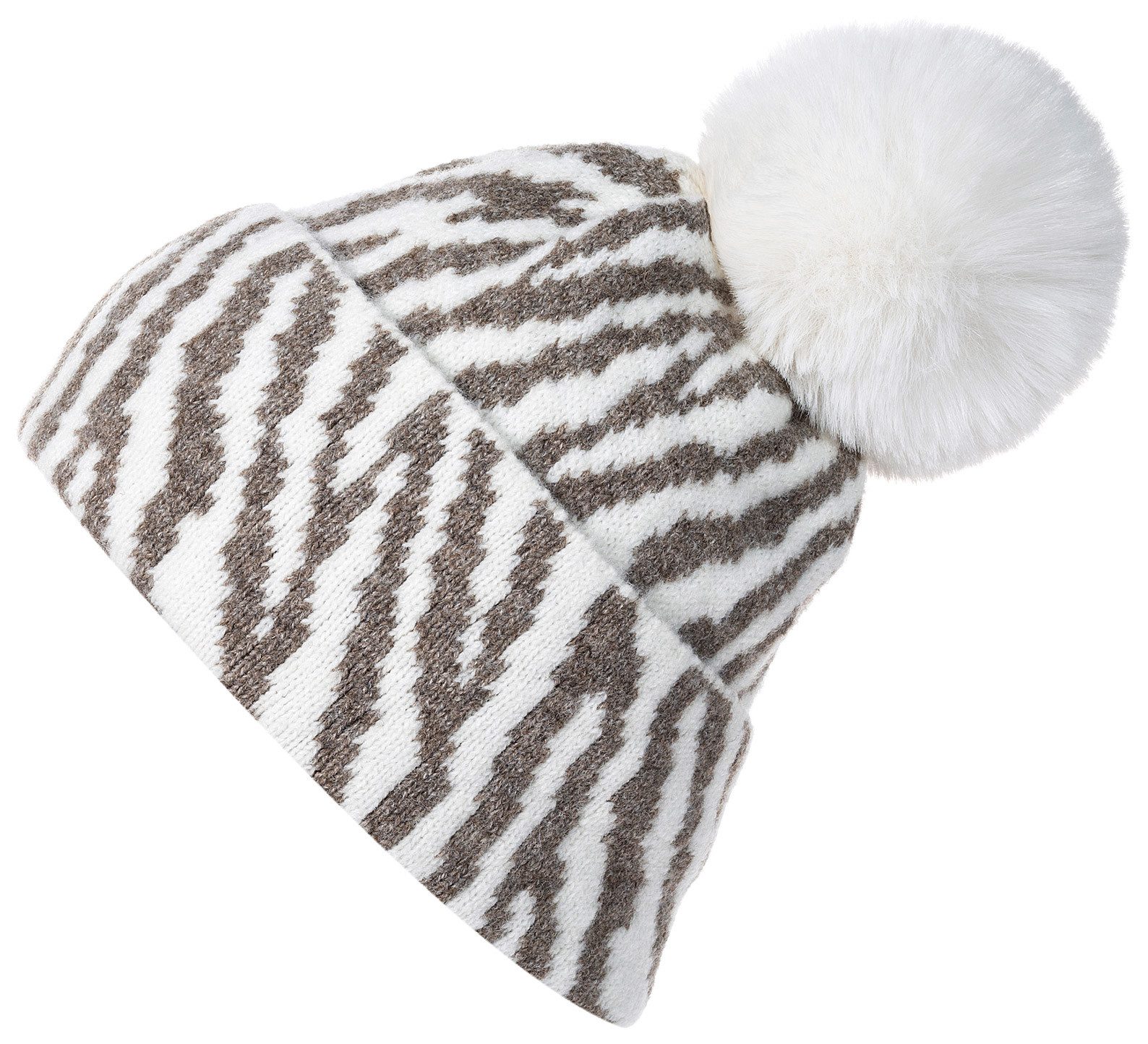 Diese modische Bommelmütze mit stylischem Zebra-Muster ist ein absolutes Must-have für die kalte Jahreszeit. Das auffällige Zebra-Design bringt einen Hauch von Trendbewusstsein in deinen Winter-Look und lässt sich vielseitig kombinieren – von sportlich bis elegant. Der weiche Kunstfell-Bommel setzt zudem einen verspielten Akzent, der jede Wintergarderobe stilvoll ergänzt.