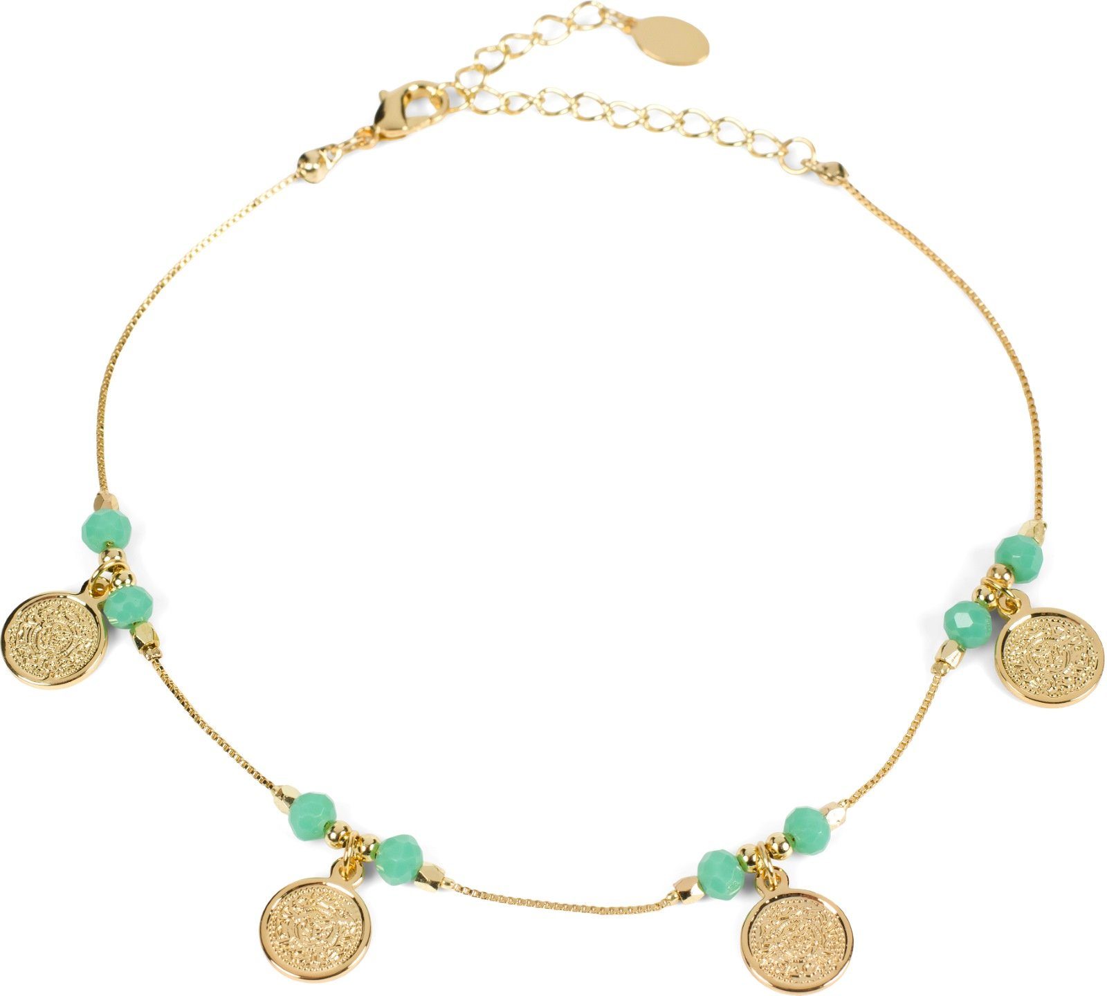 - feine Venezianer Fußkette mit Ancient Coin Münz Anhängern, kleinen Kunststoff Perlen und Karabiner Verschluss