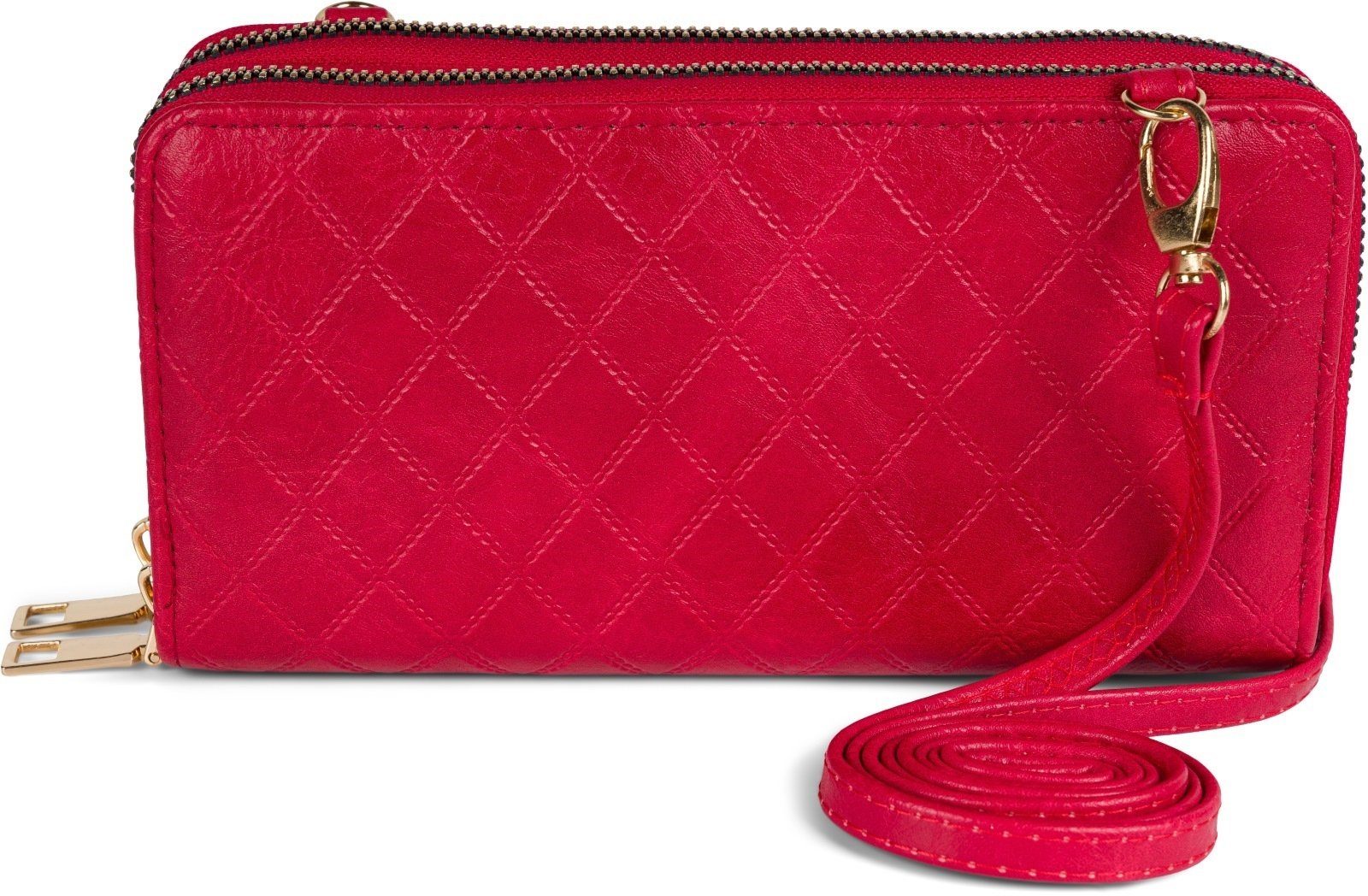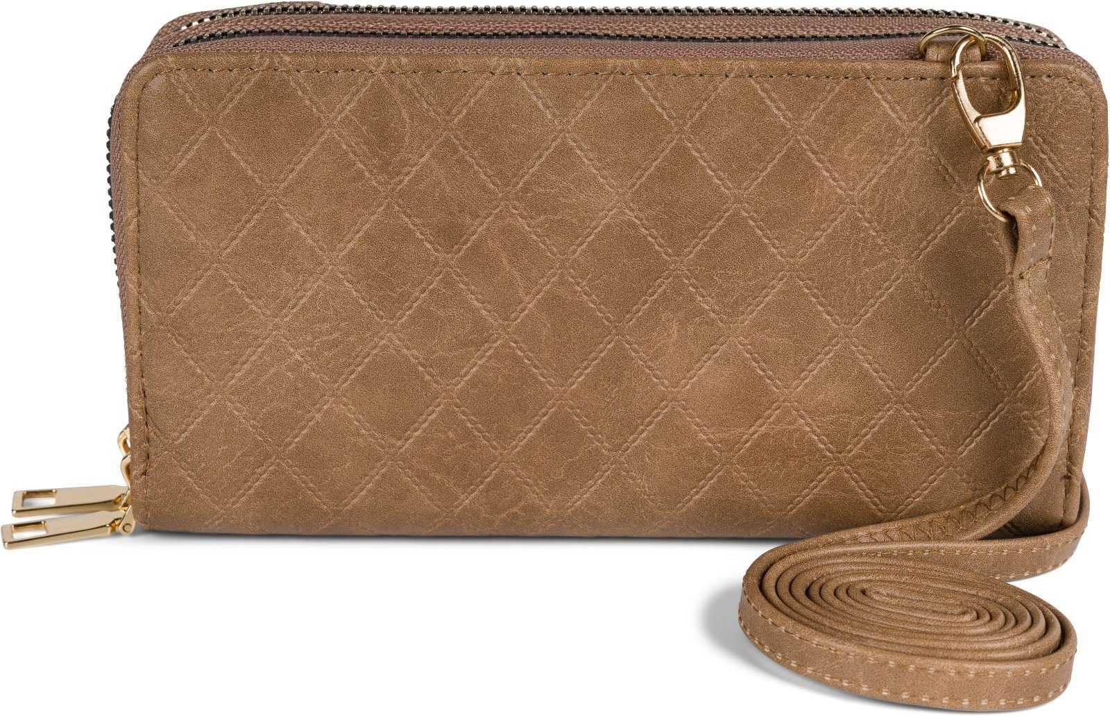 styleBREAKER edle 2 in 1 Mini Umhängetasche / Geldbörse mit 2 Reißverschluss Fächern und Einfarbiger geprägter Oberfläche in Rauten Form.