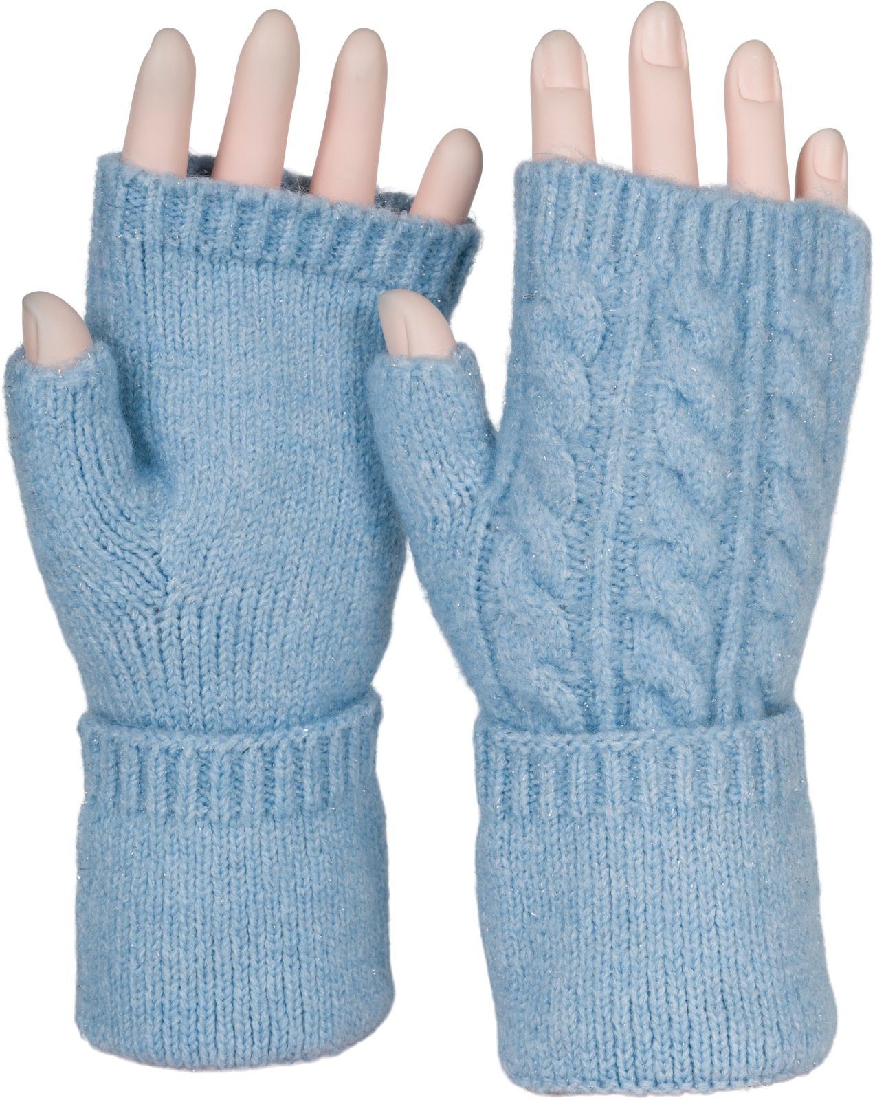styleBREAKER stylische Fingerlose Strick Handschuhe mit Zopfmuster und glänzendem Metallic Faden.