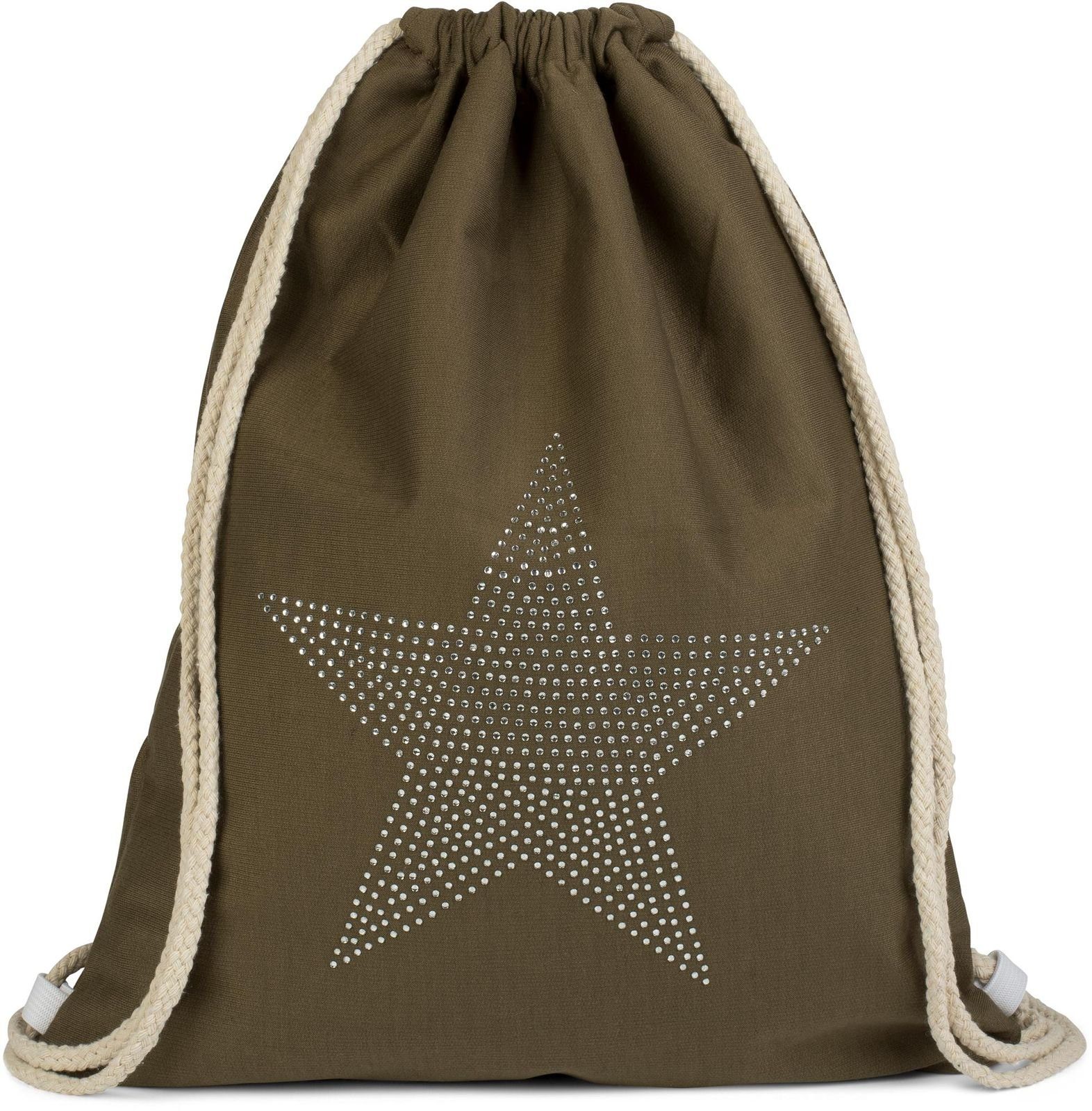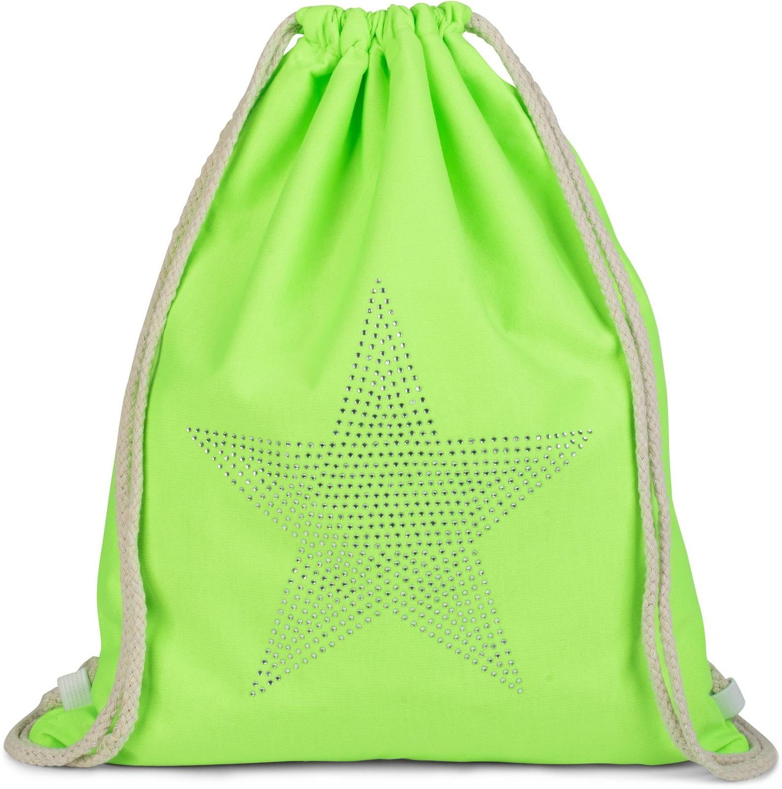 styleBREAKER trendiger Turnbeutel mit Glitzerstein Stern.
