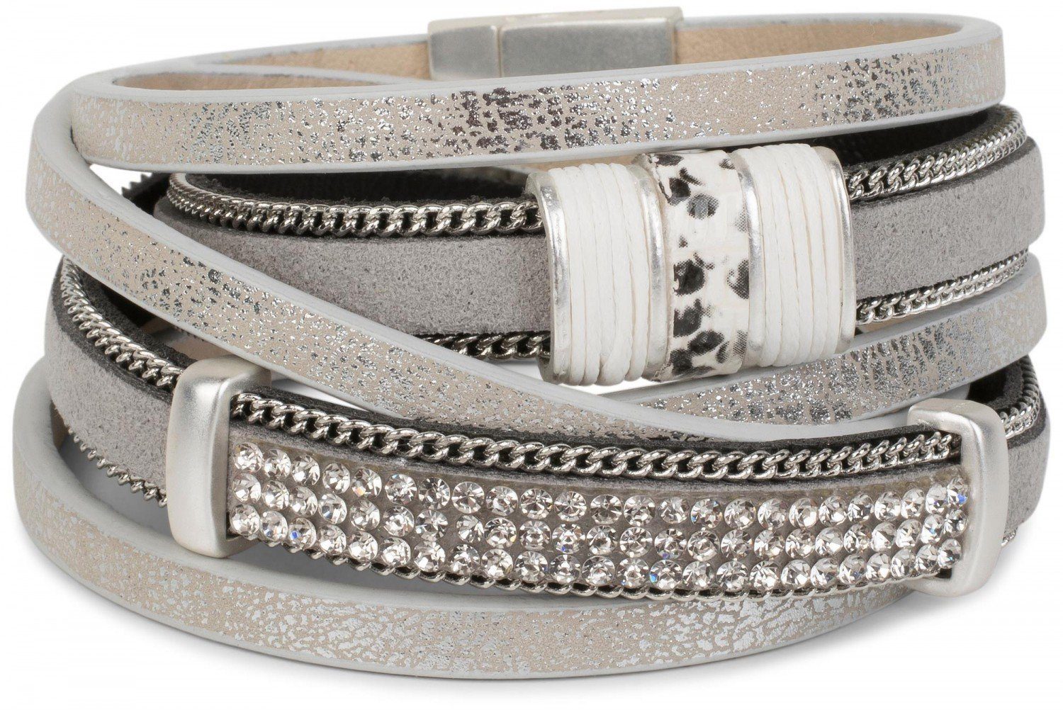 styleBREAKER weiches Wickel Armband mit Glaskristallen und Gliederkette.