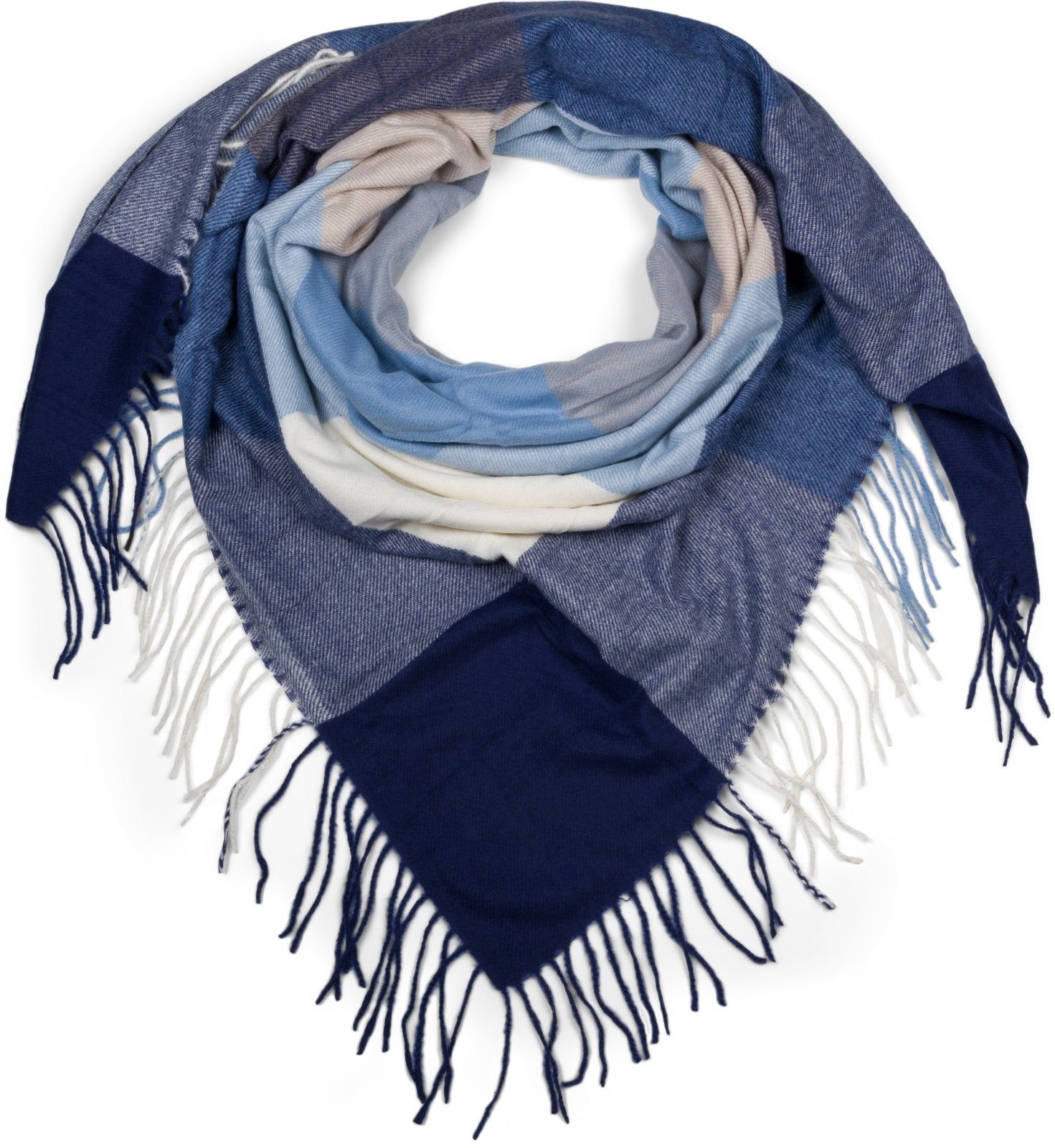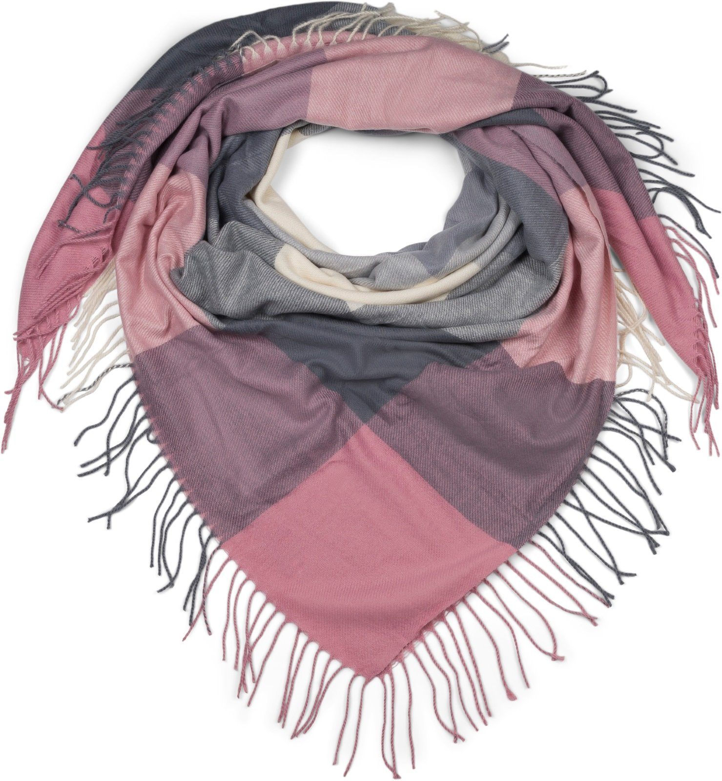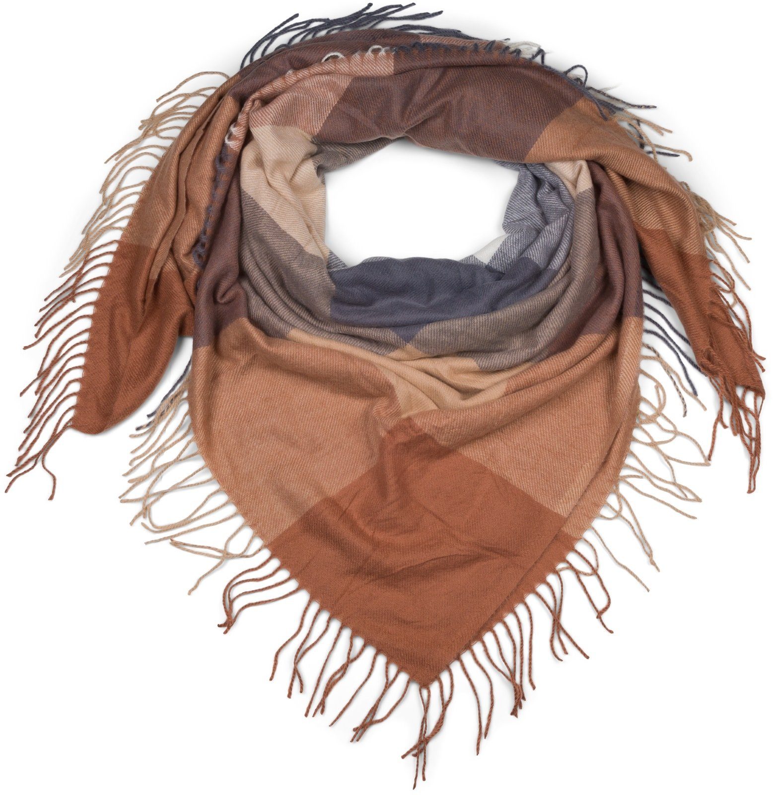 styleBREAKER kuschlig weicher Viereckiger XXL Decken Schal mit mehrfarbigem Karo Muster und langen Fransen.
