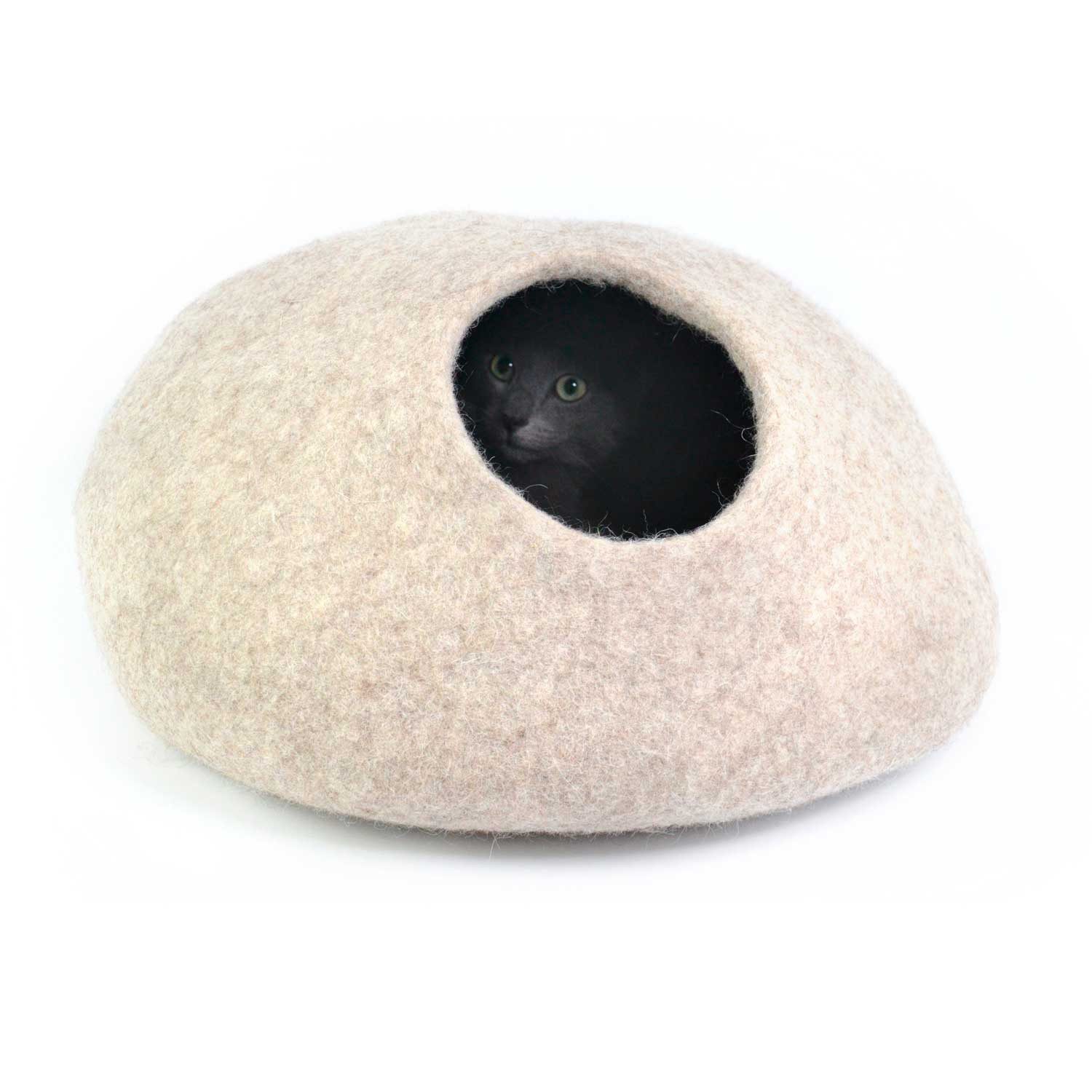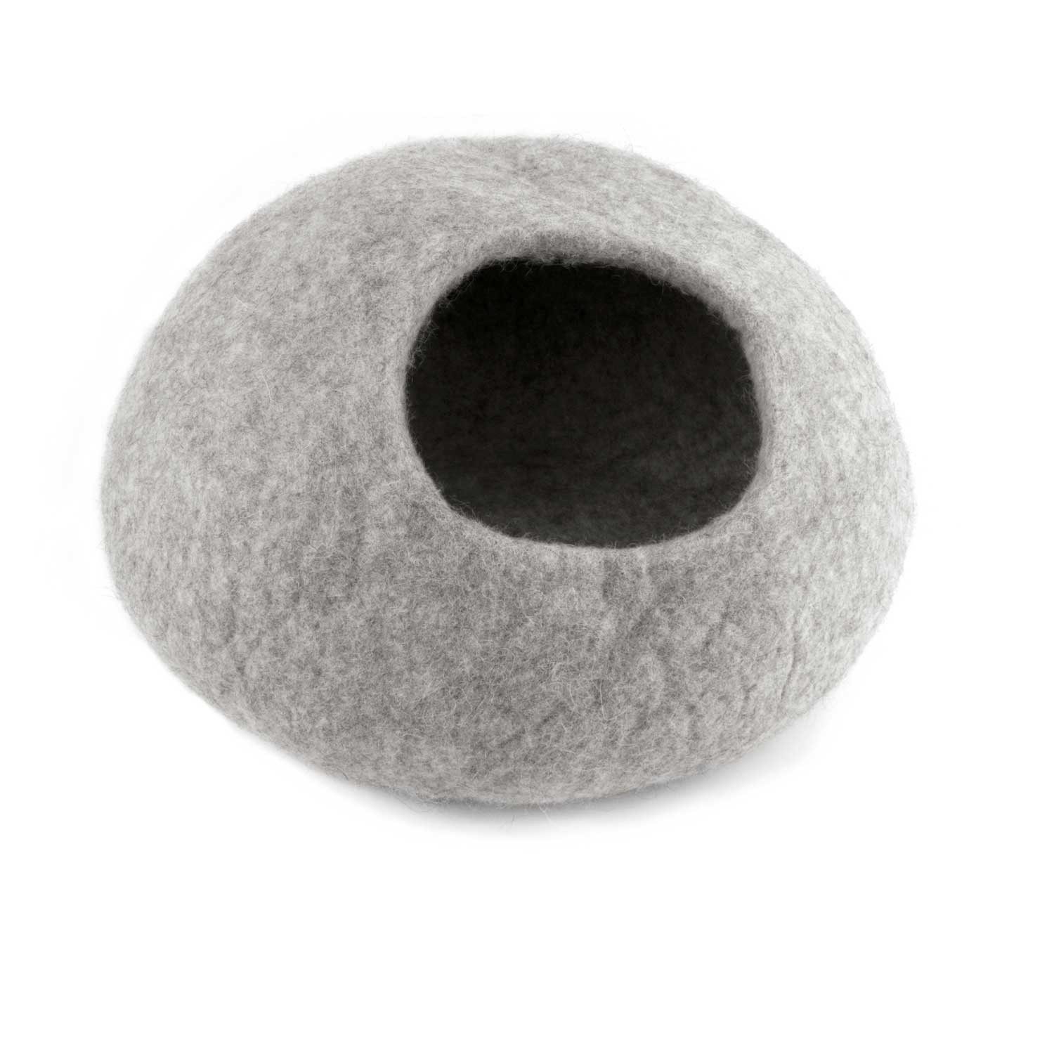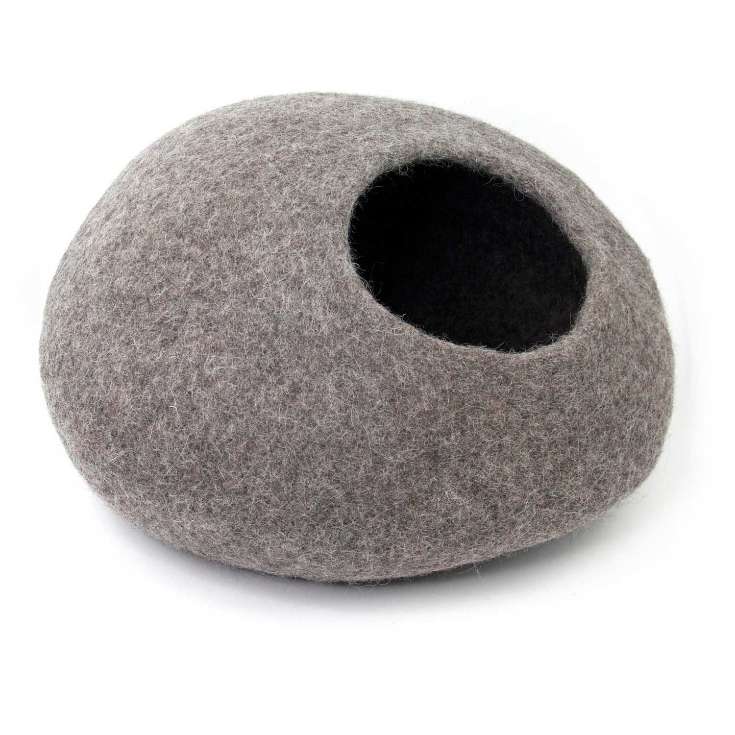 Die neue chill-out area der Katze. Die perfekt verarbeitete Katzenhöhle besticht durch ihr klares Design, sowie durch die hochwertige Materialität. Sie wird in der Nähe von Hannover nach traditioneller Handwerkskunst ohne Nähte und nur von Hand mit Wasser und Olivenseife gefilzt. Es wird ausschließlich hochwertige Bergschafwolle verwendet. Die Filzstärke der Katzenhöhlen beträgt ca. 10 mm. Sie sind sehr stabil, robust und pflegeleicht.