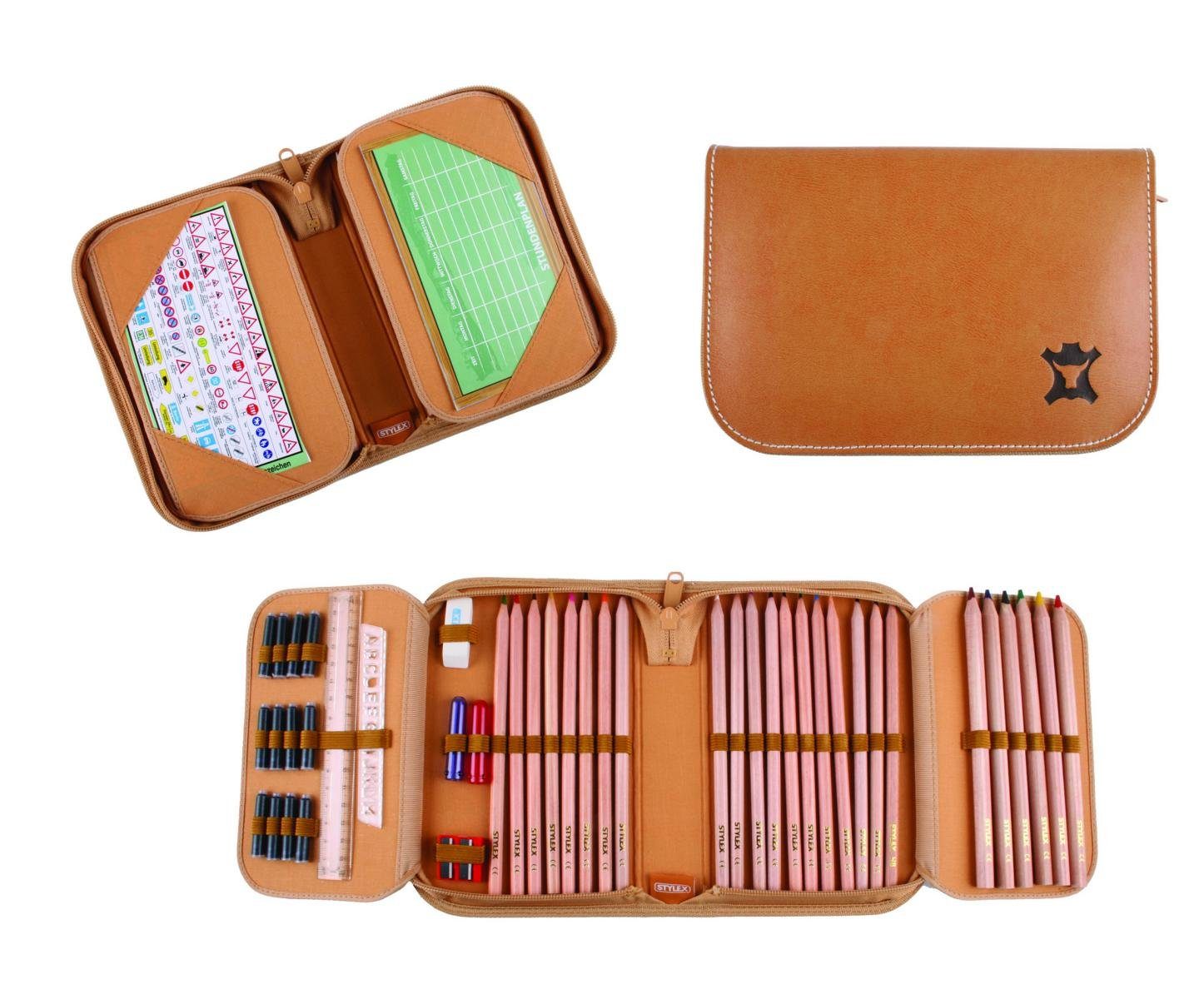 Stylex Schreibwaren Federtasche Leder Federtasche Federmappe Schüleretui "Back to the Natur" 47tlg.
