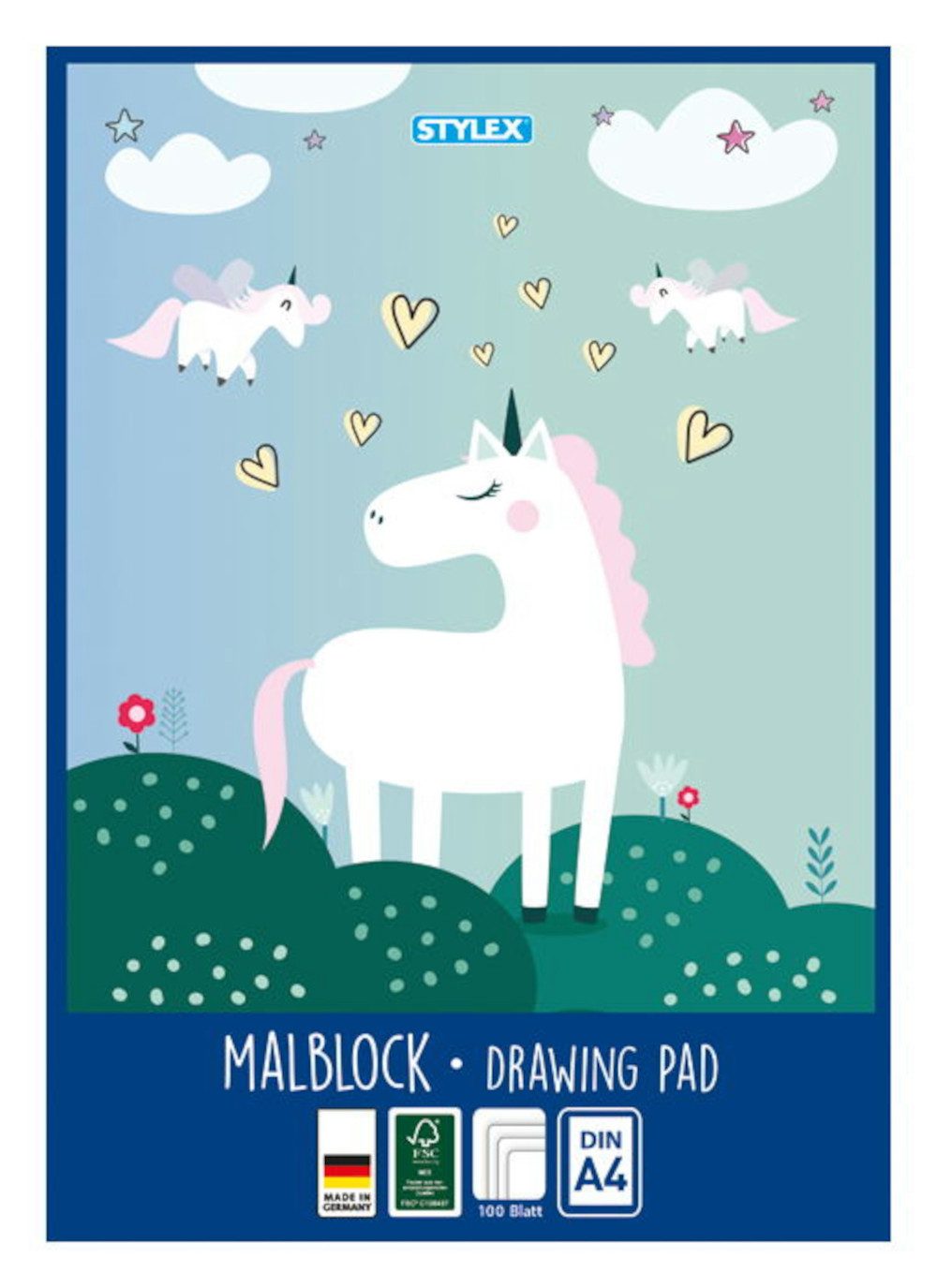 Stylex Schreibwaren Geschäftspapier Malblock XL / 100 Blatt / DIN A4 / Zeichenblock / "Einhorn"