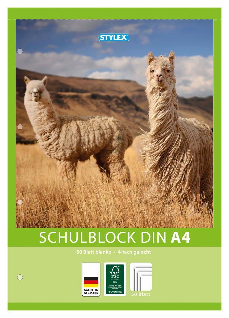 Stylex Schreibwaren Geschäftspapier Schulblock / blanko / DIN A4 / gelocht / 50 Blatt